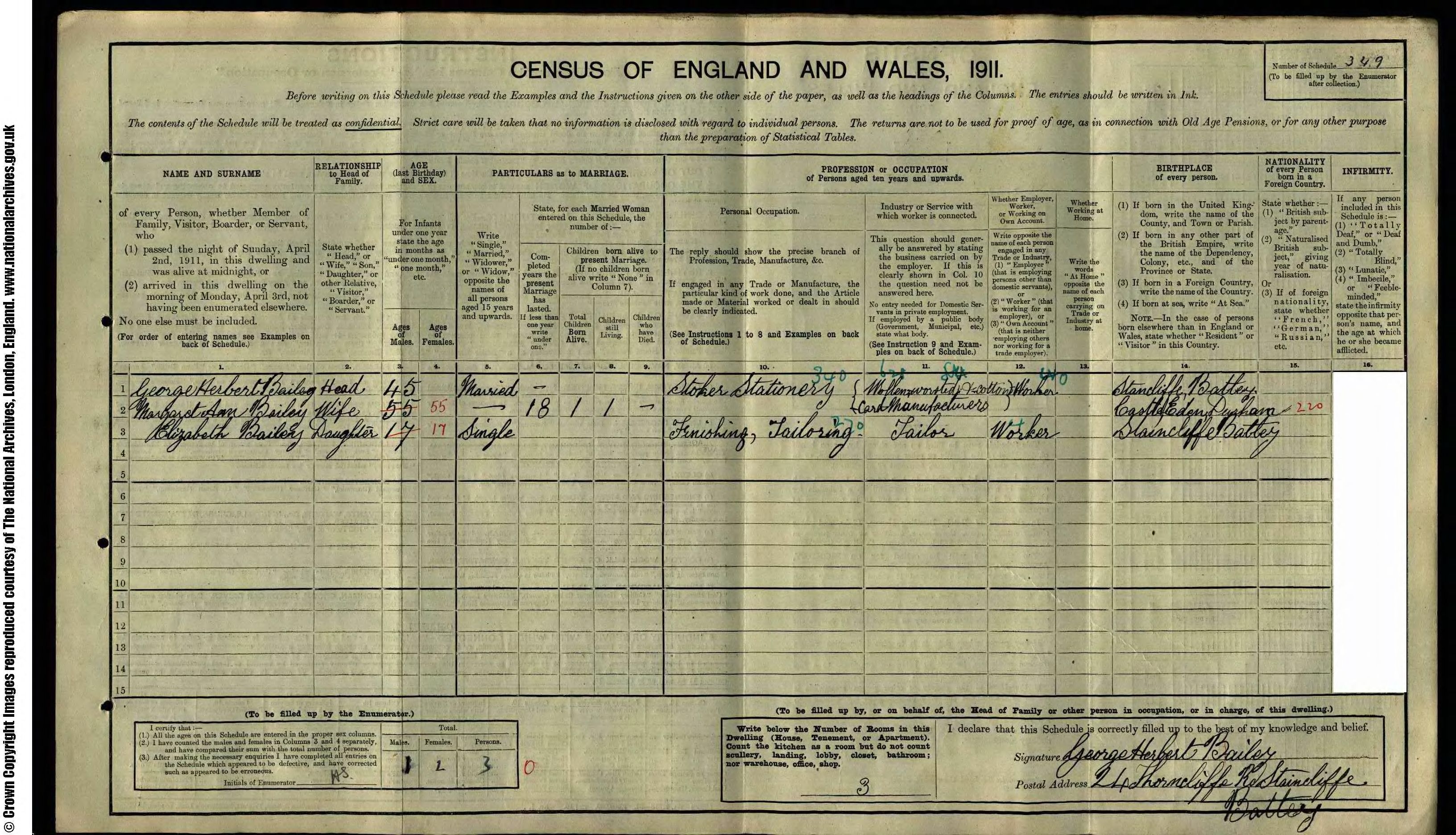 • Occupation: Stoker - Stationery (sic), 1911, Batley, Yorkshire, England. • Lived at: 24 Thorncliffe Road, 1921, Batley, Yorkshire, England.