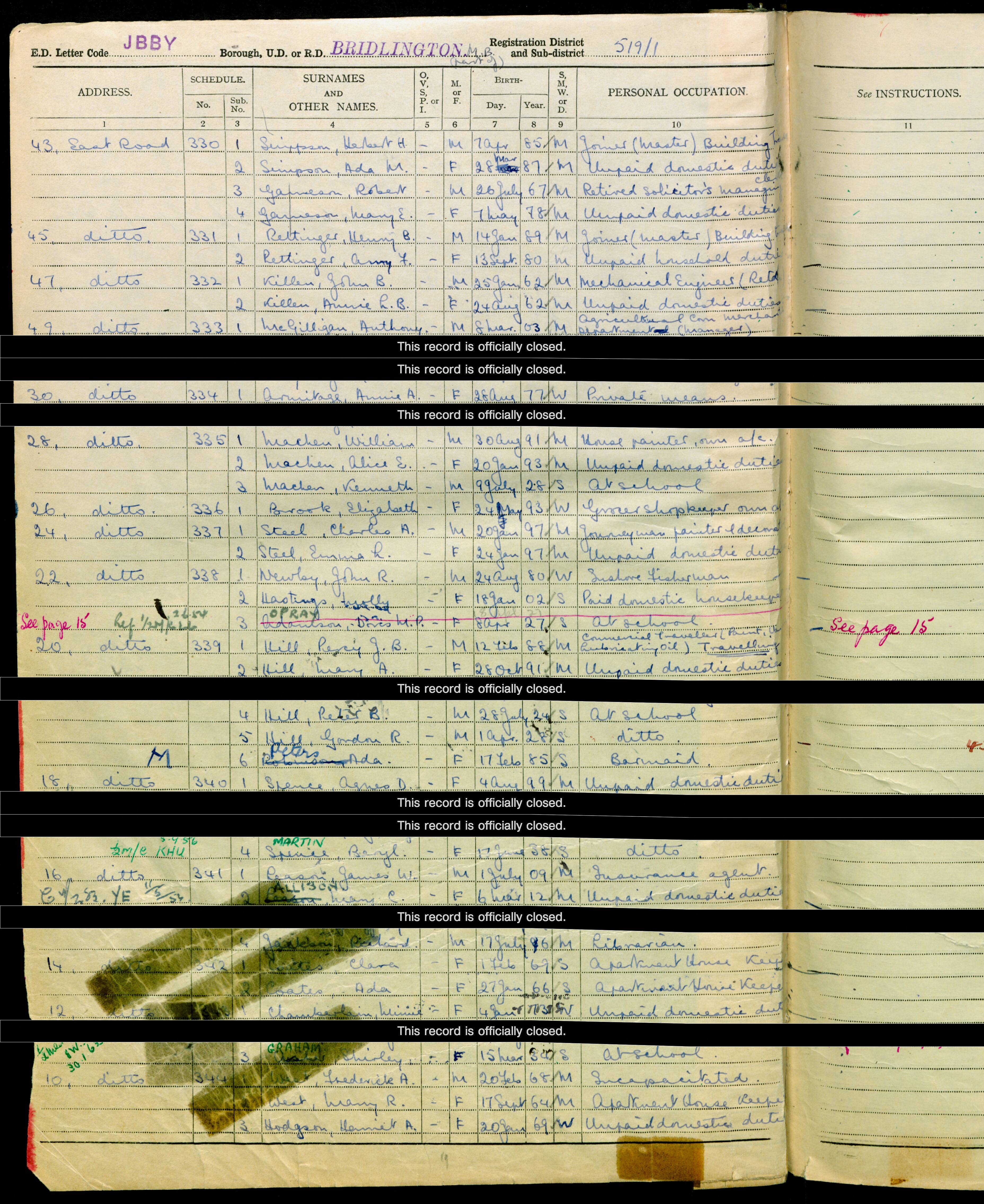 • Occupation: Grocery, Storekeeper, 1939, Bridlington, Yorkshire. • Lived at: 26 East Road, Bridlington, Bridlington M.B., Yorkshire (East Riding), England, 1939. Elizabeth married Arthur Brook on 25 Oct 1917 in Batley, Yorkshire, England. (Arthur Brook died before 1939.) |