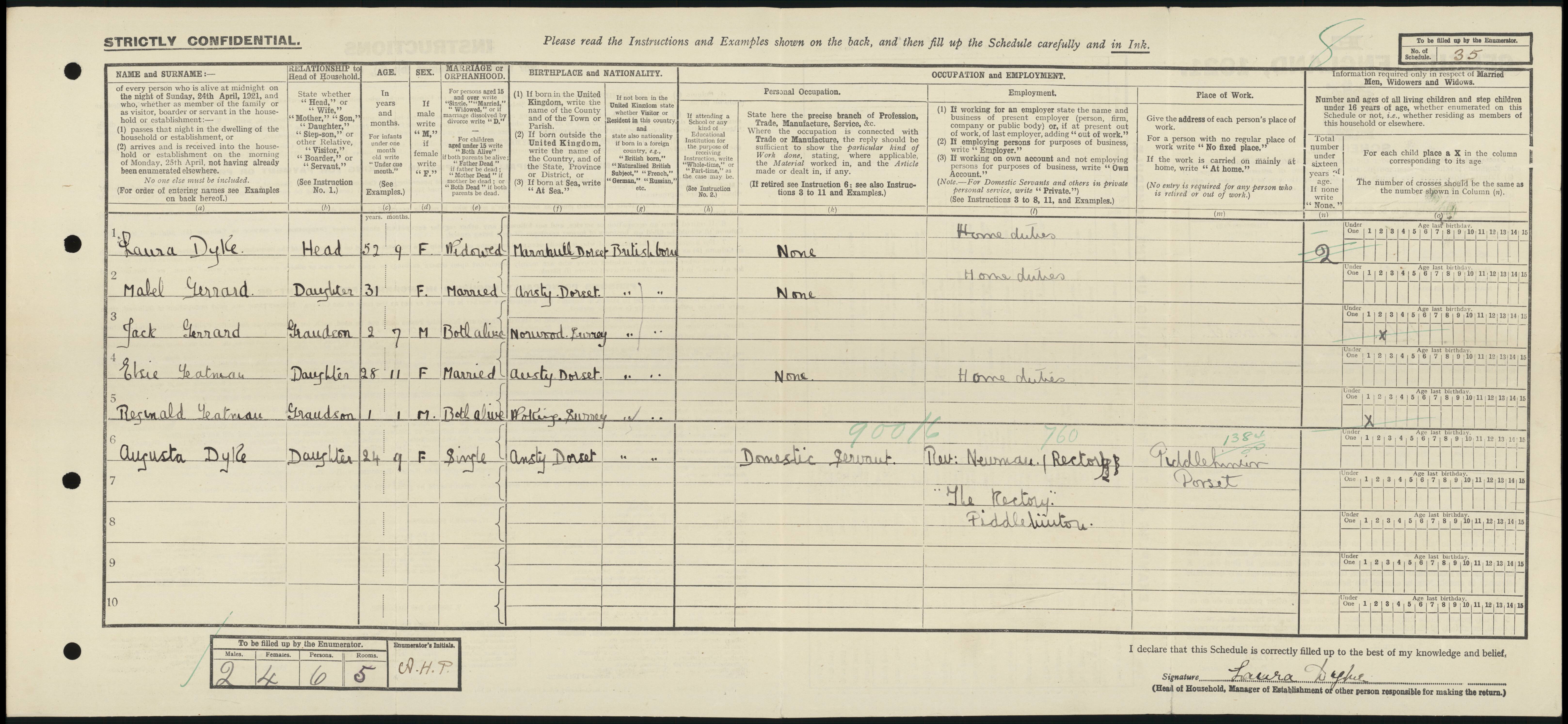 Baptism Notes: Name: Death Notes: Name: Events • Lived at: Private House, 1901, Marnhull, Dorset, England. 1
