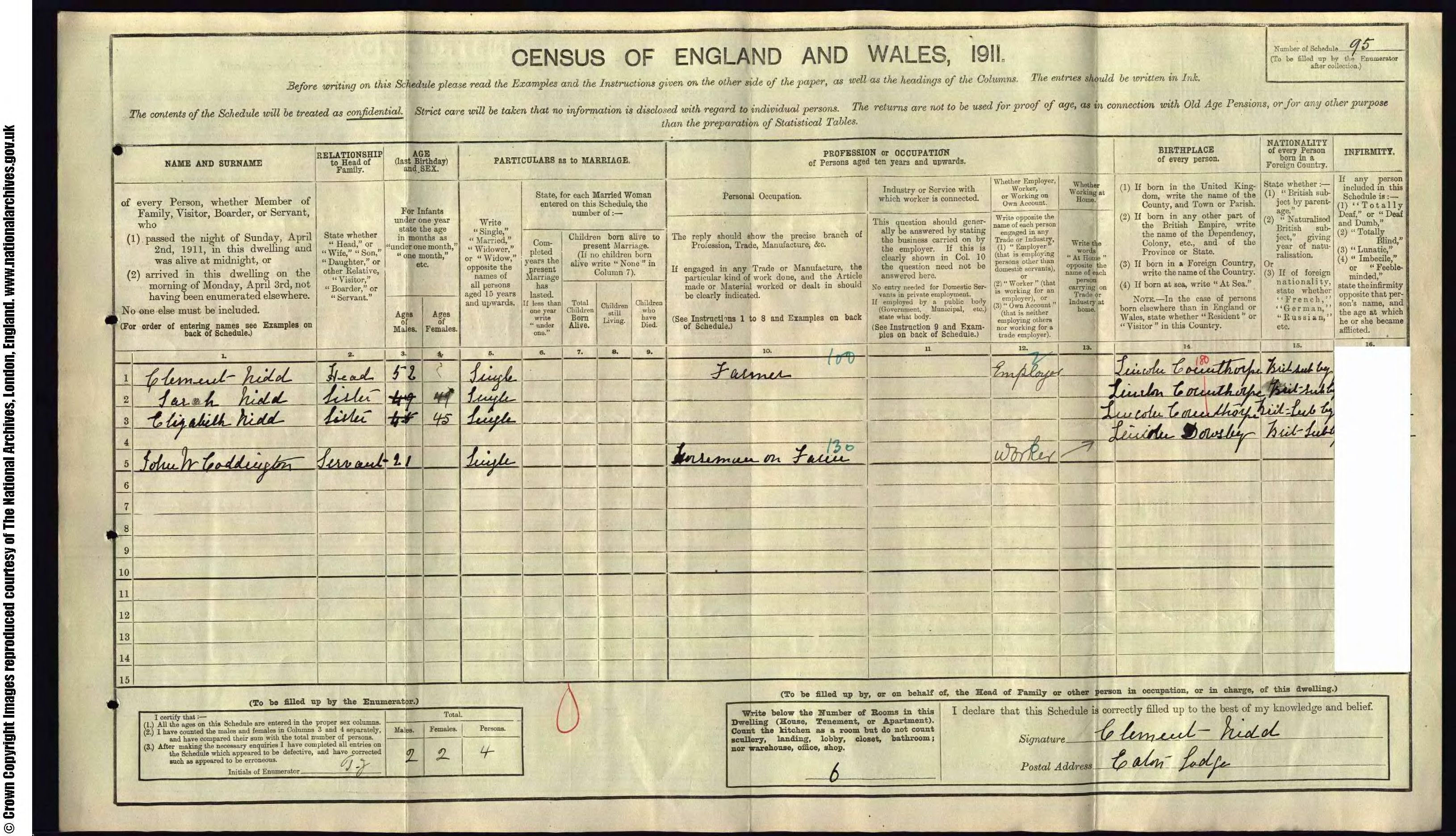 • Lived at: Eaton Lodge, 1911, Lincolnshire, England.