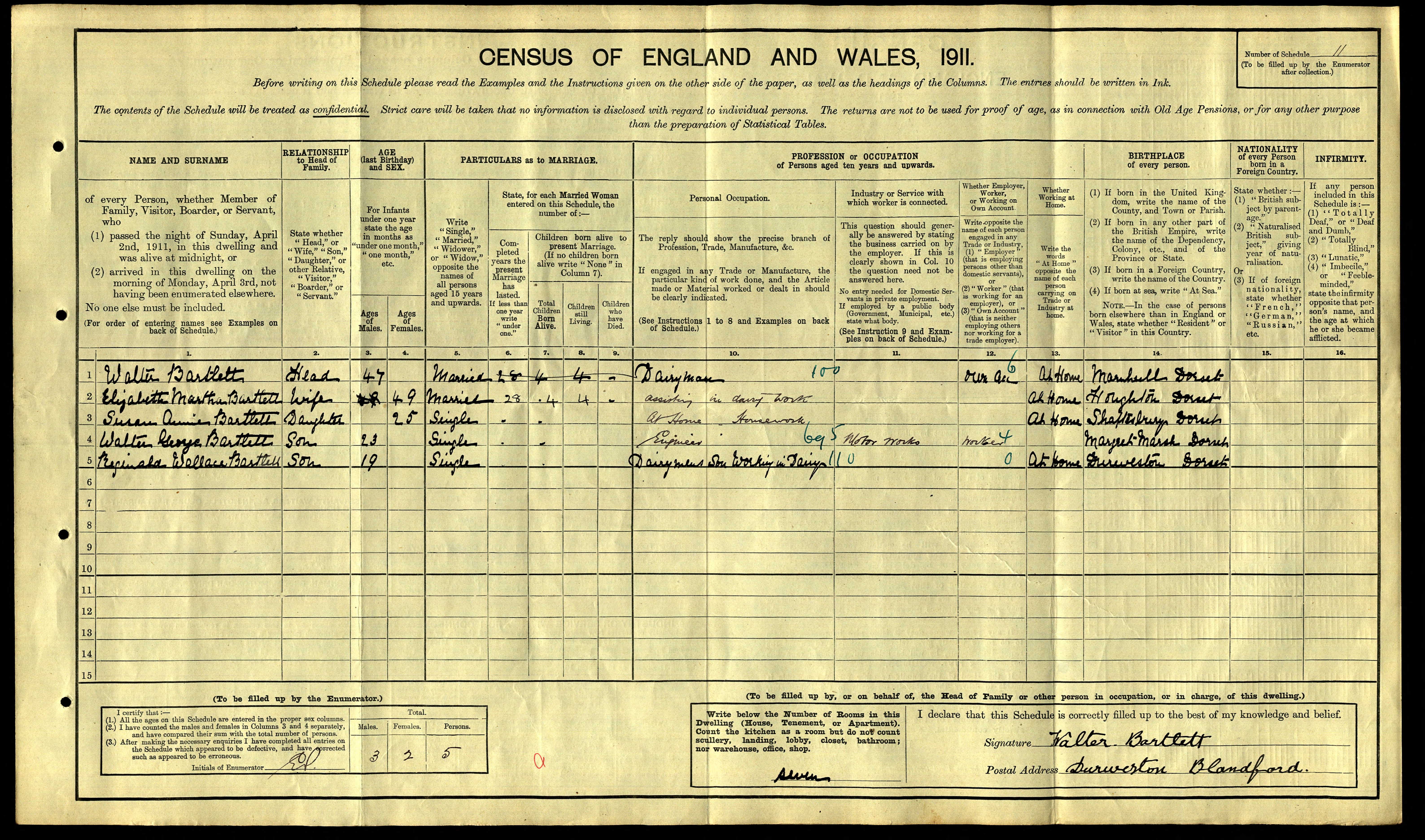 • Lived at: The Dairy, Durweston, Blandford, Dorset, 1911.