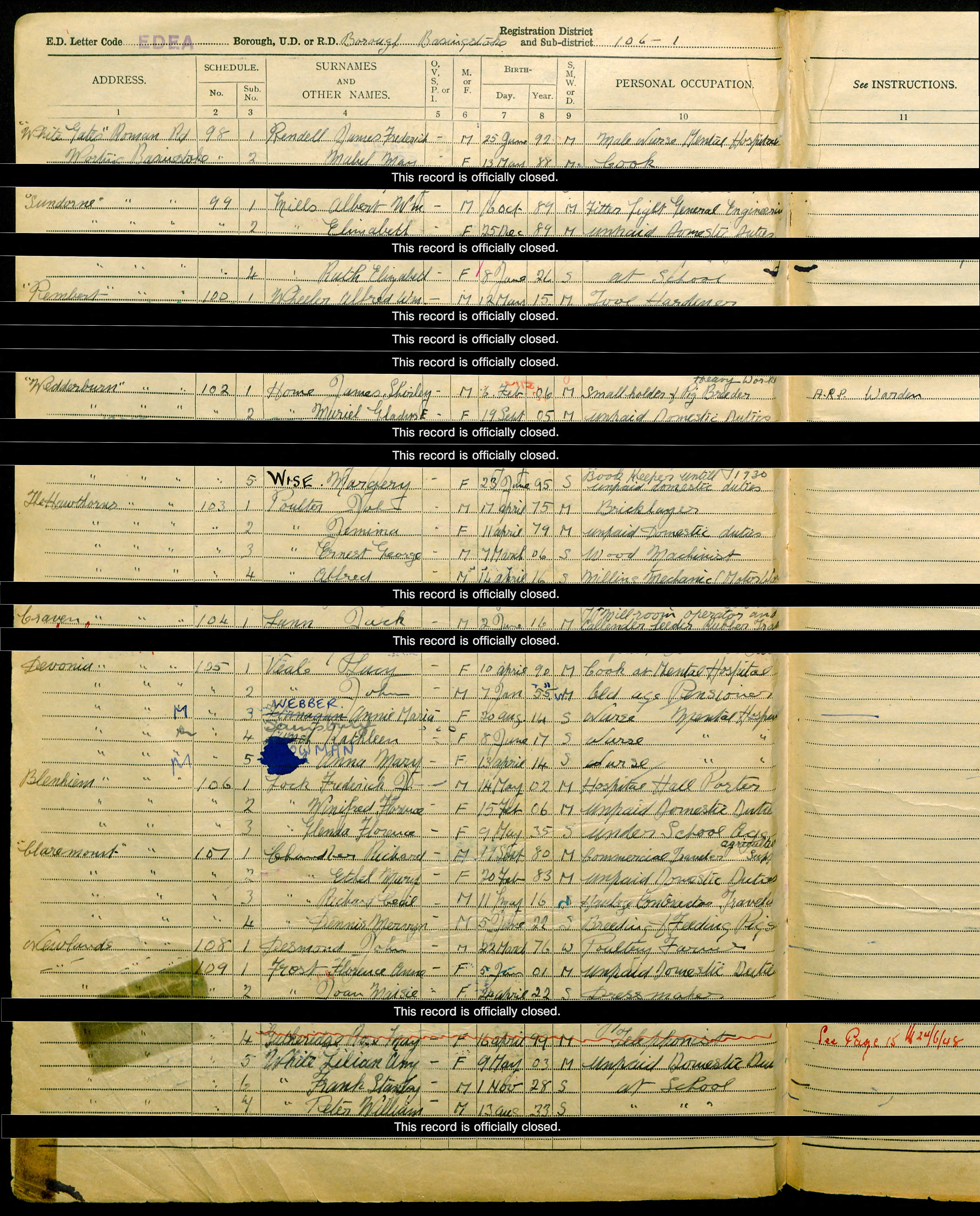 • Occupation: Cook, 1939, Basingstoke, Hampshire, England. Mabel married James Frederick Rendell after 1921. (James Frederick Rendell was born on 25 Jun 1892 and died Mar Q 1983 in Basingstoke, Hampshire, England.) |