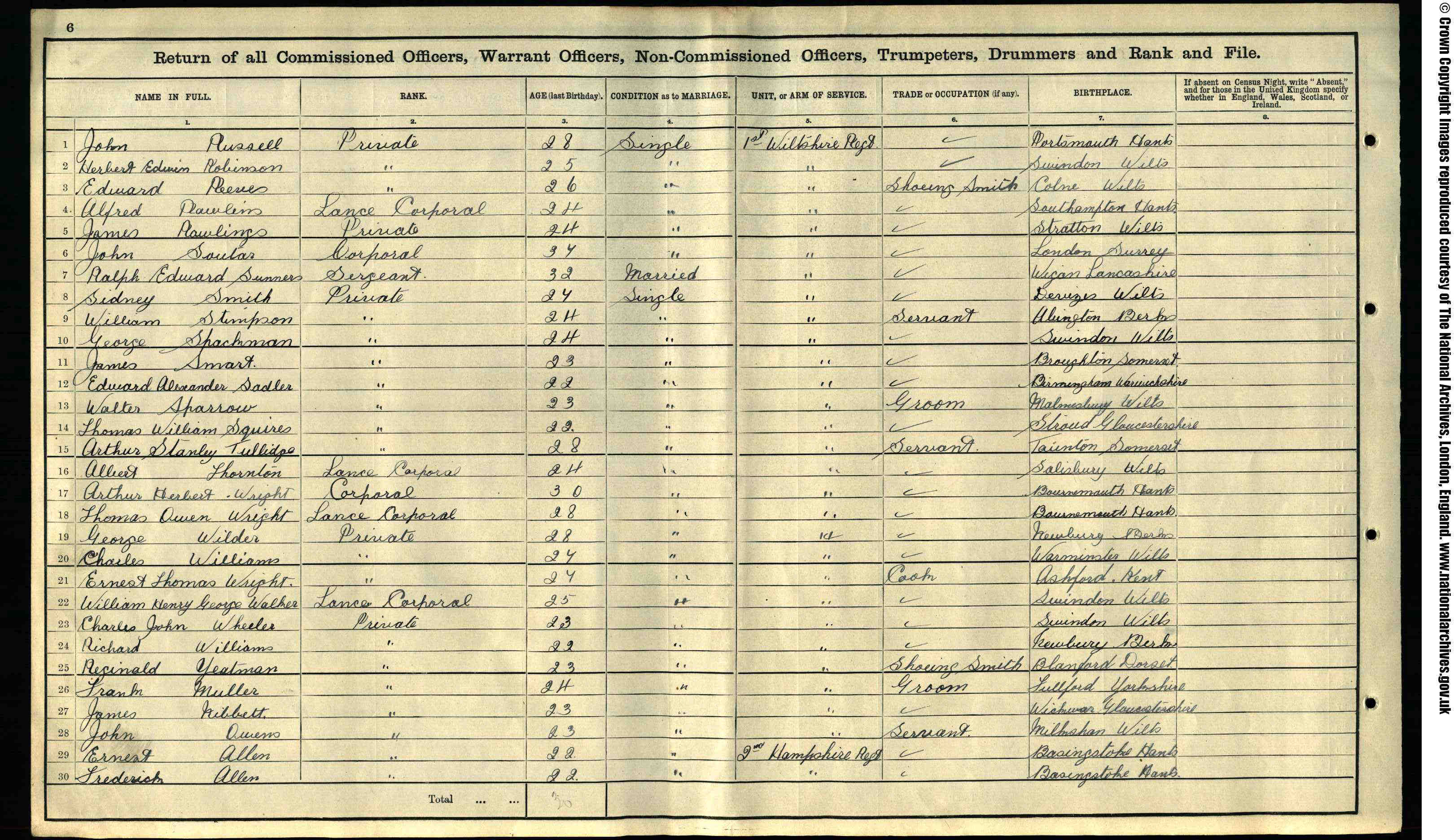 • Military: Based at Kings Hill, 1911, Harrismith, O.F.S. Private 8104 1st Bn.Wiltshire Regiment |