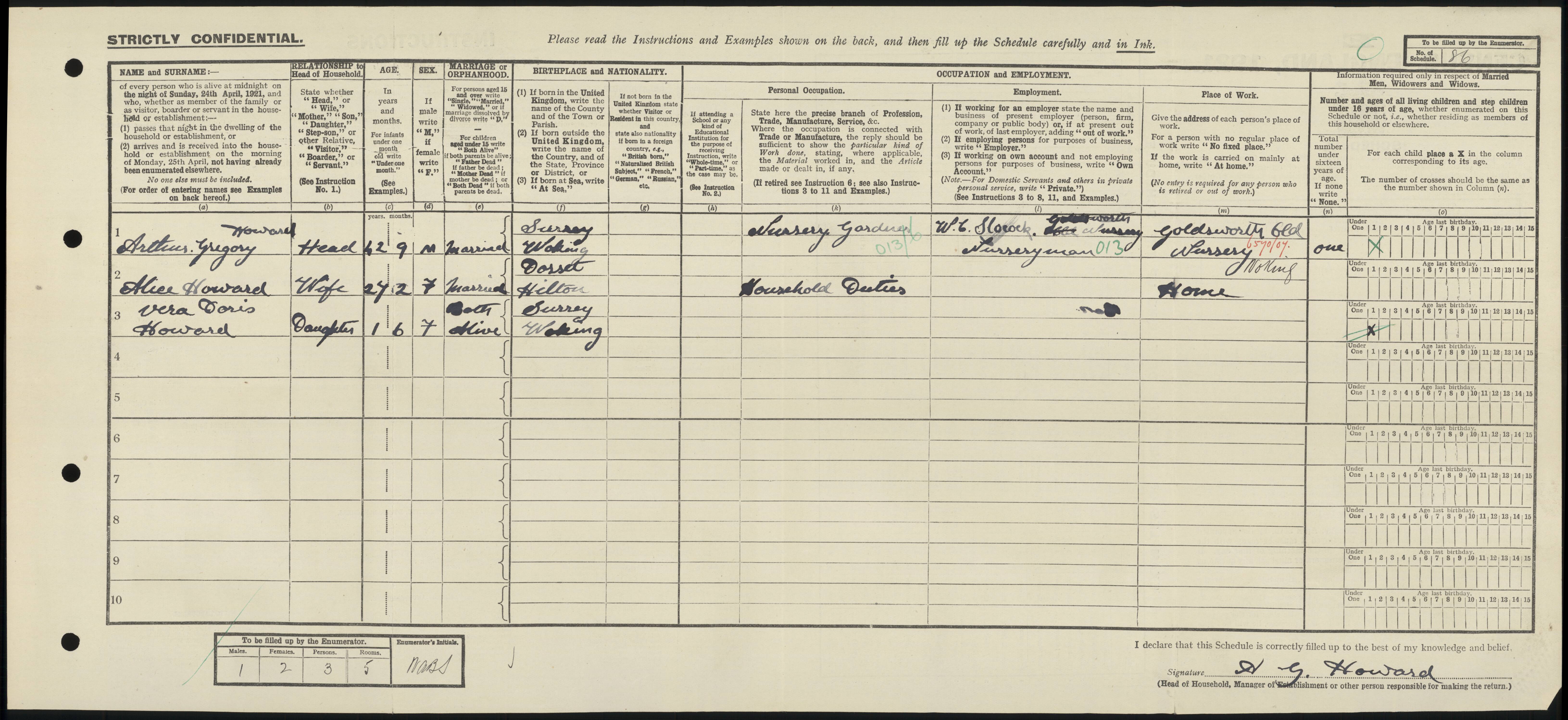 • Lived at: 4 Monnow Terrace, 1921, St John's Road, Woking, Surrey, England. Alice married Arthur Gregory Howard. (Arthur Gregory Howard was born circa 1879 in Woking, Surrey, England.) |