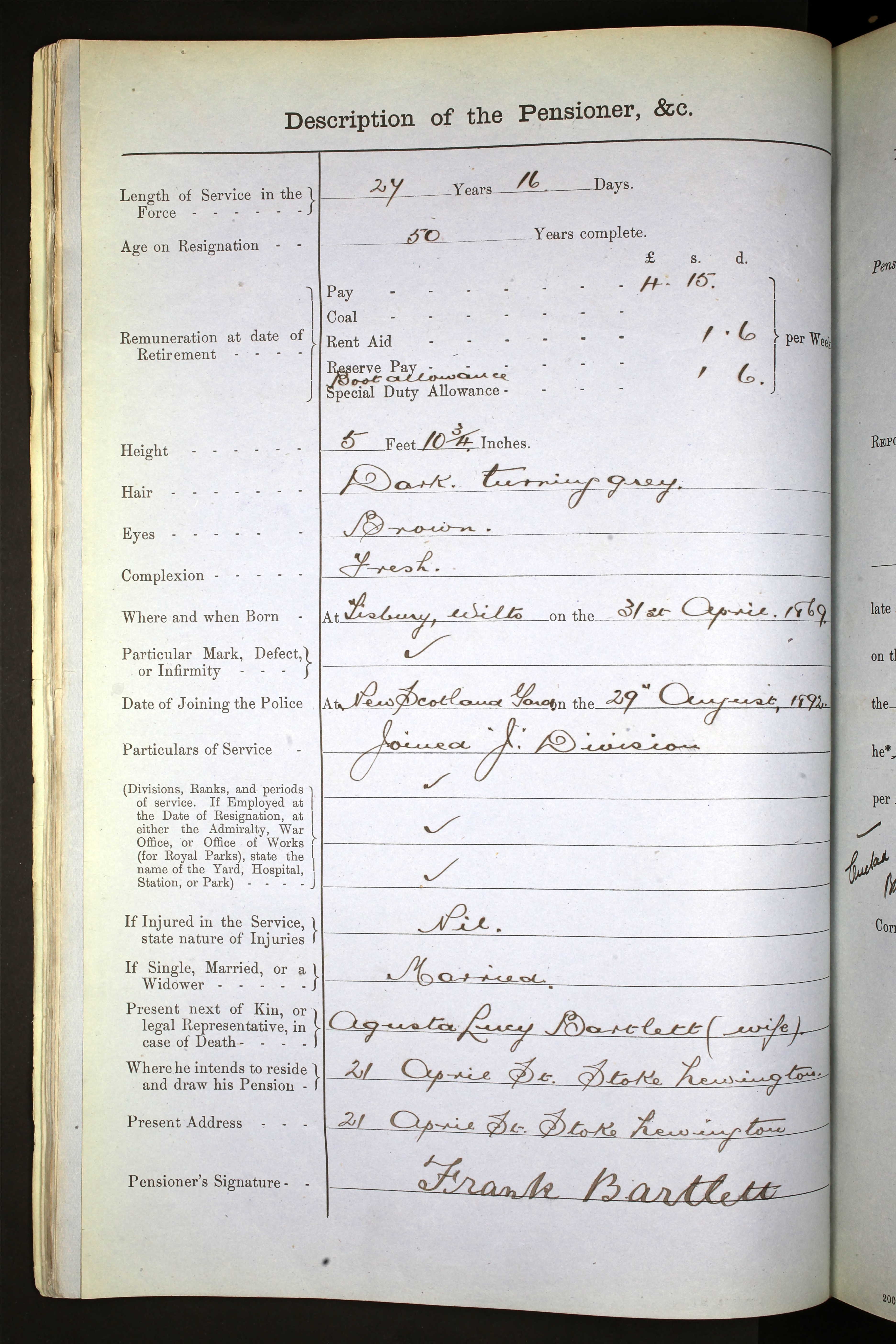 • Pension: Metropolitan Police, 15 Sep 1919, Hackney, London. Name: