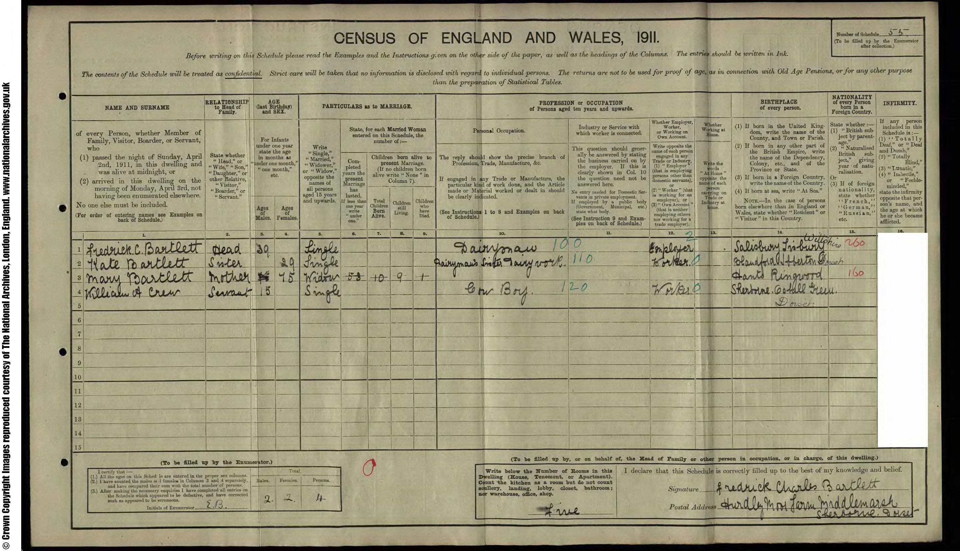 • Lived at: Hurdley Moor Farm, Middlemarsh, 1911, Sherborne, Dorset. |