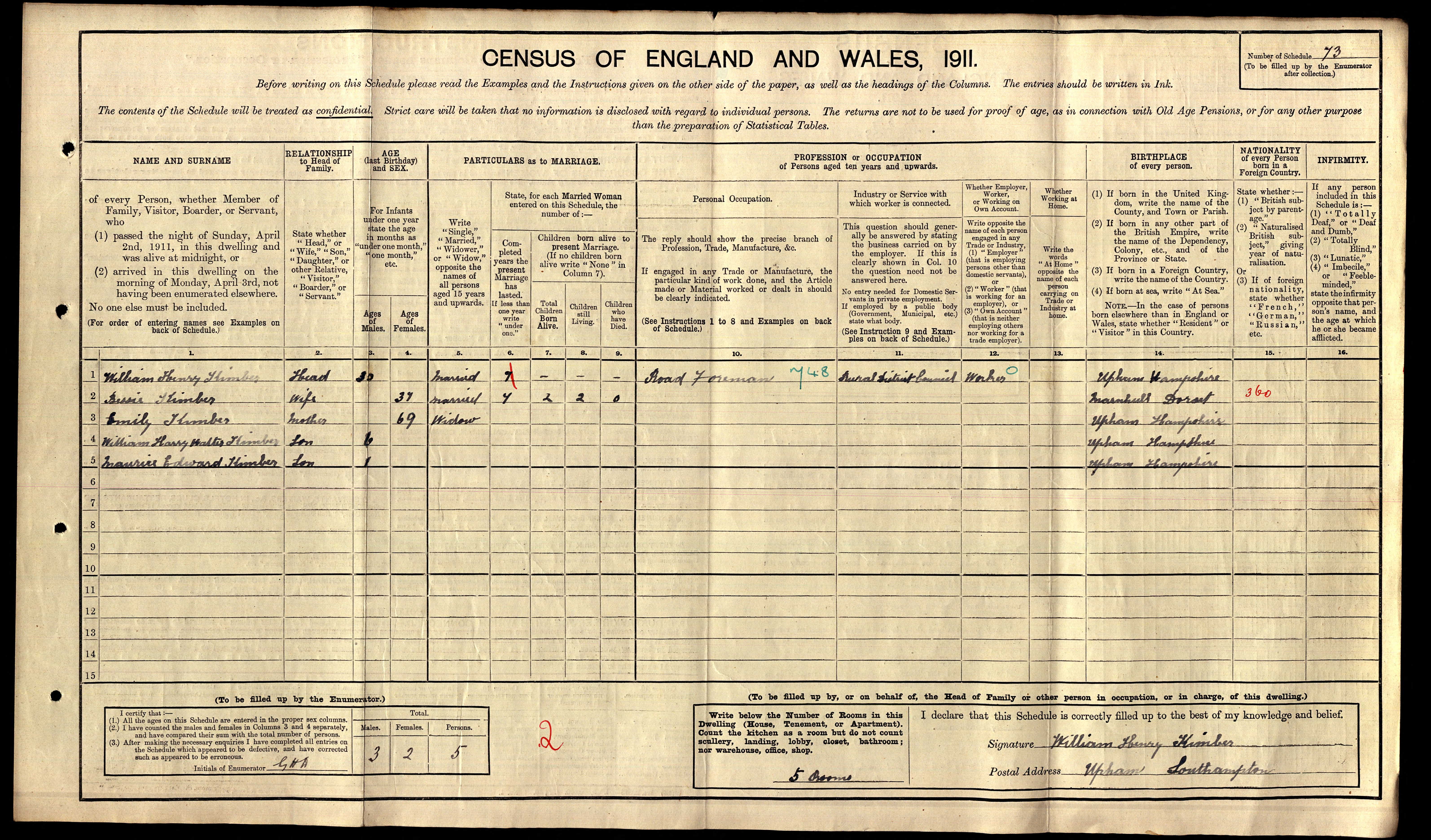 • Lived at, 1911, Upham, Hampshire.