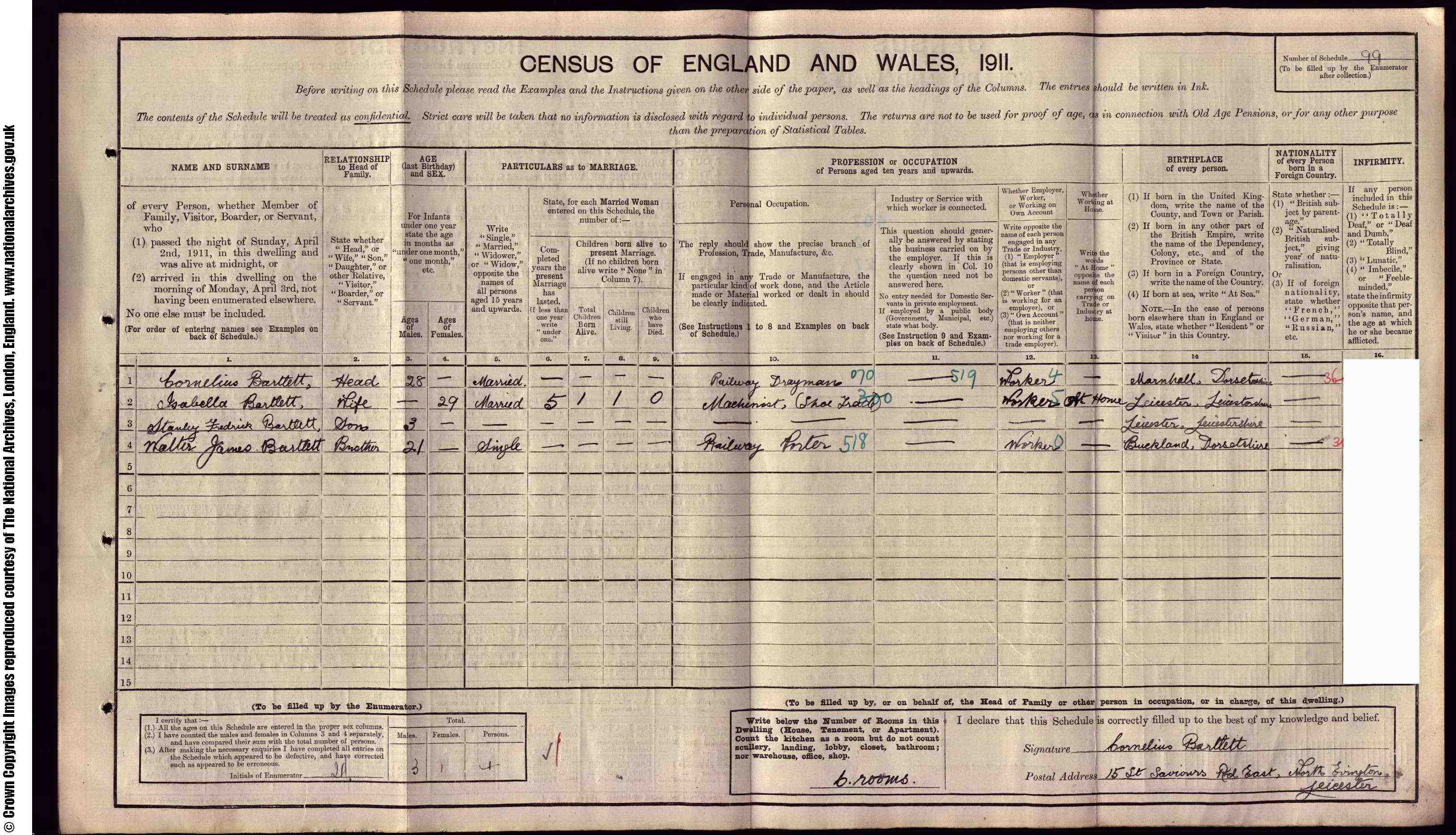 • Occupation: Railway Porter, 1911, Leicester, Leicestershire, England. |