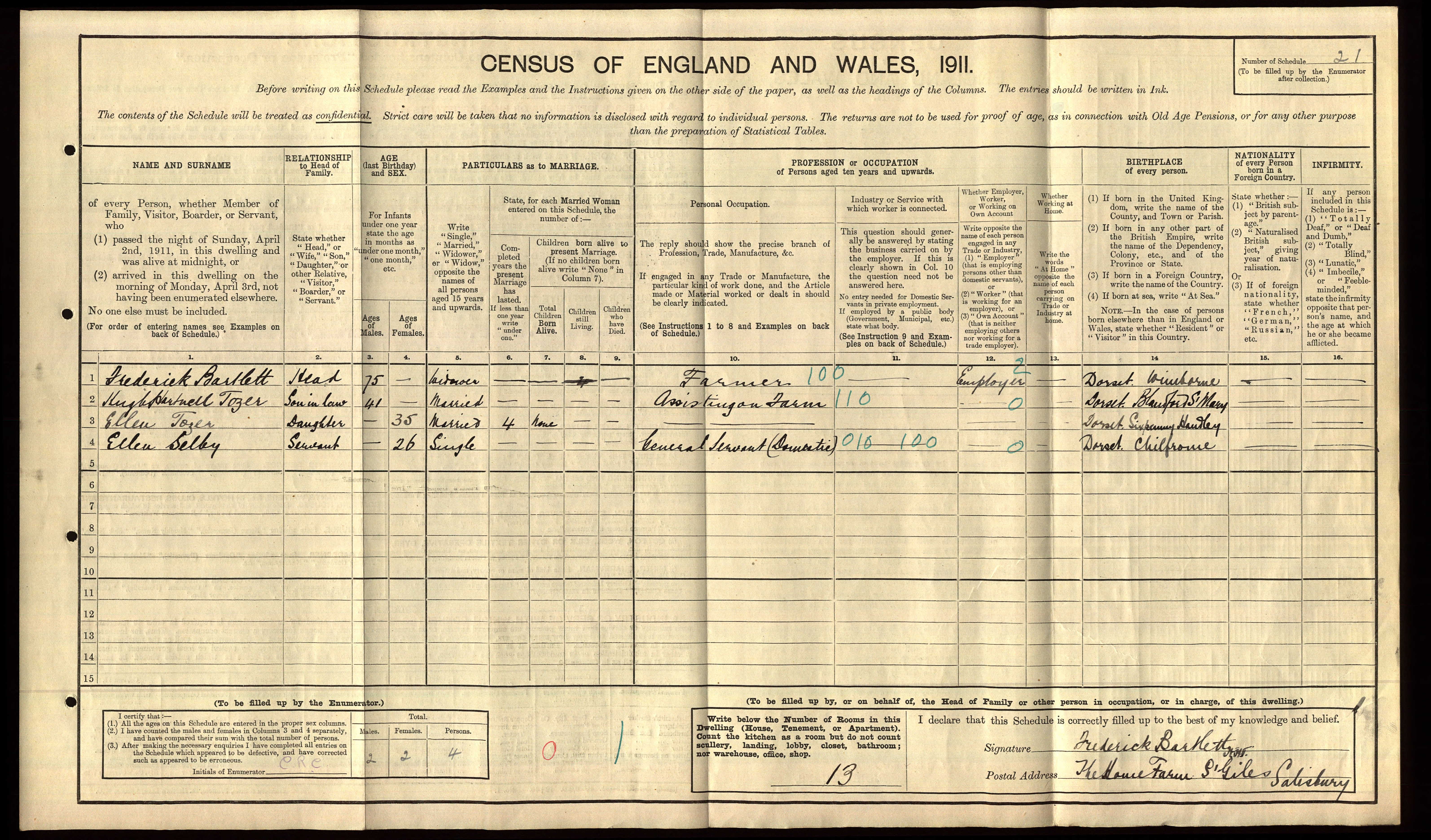• Lived at: Wimborne St. Giles, 1901, Dunwester, Dorset.