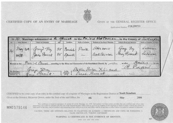• Lived at: 62 Salisbury Street, 1921, Shaftesbury, Dorset, England. • Occupation: Painter and Decorator, 1921, Shaftebury. George married Jane Barratt on 20 May 1888 in North Stoneham, Southampton. (Jane Barratt was born circa 1862 in Newton, Wiltshire 4 and died after 1921 4.) |