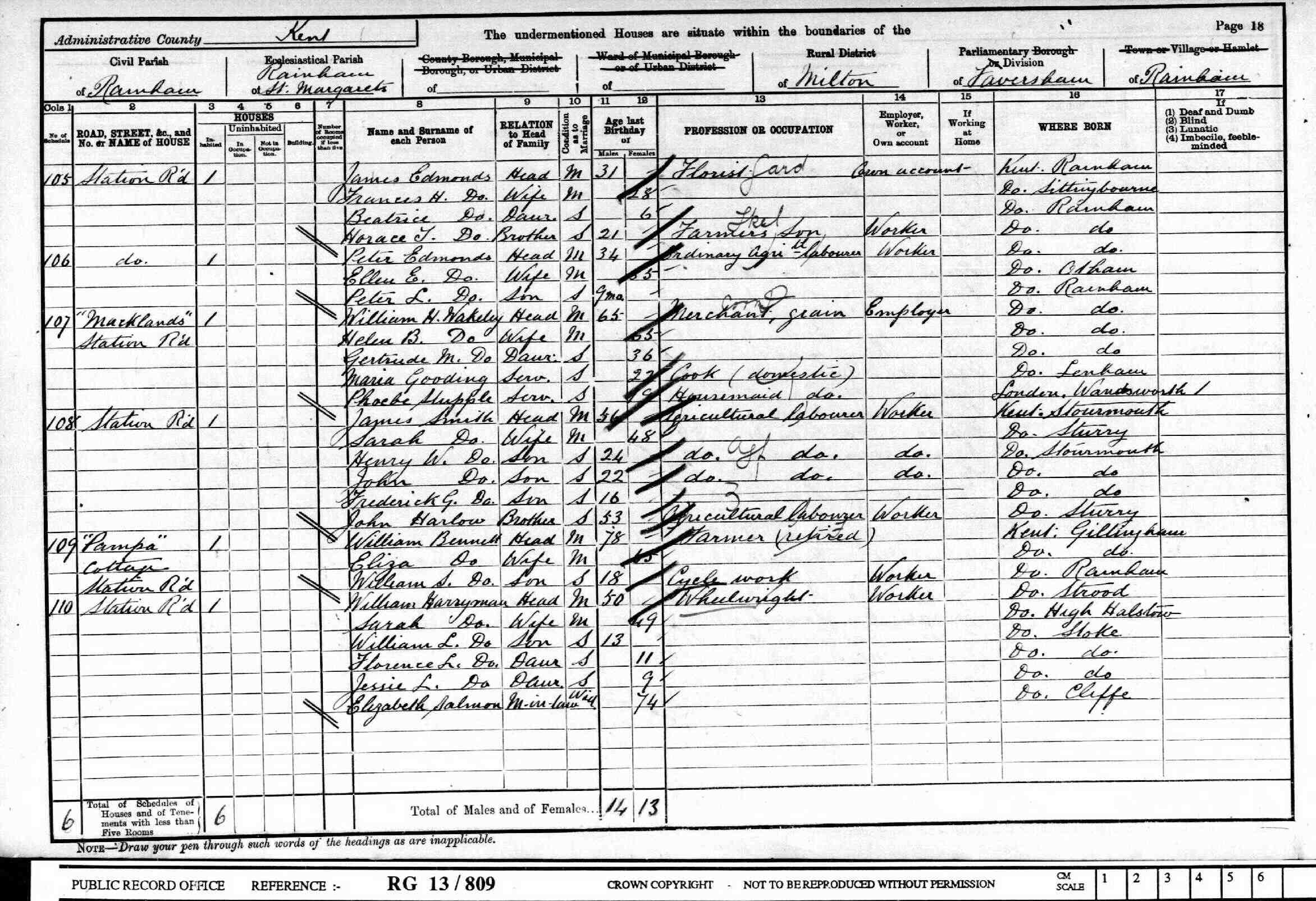 • Occupation: Wheelwright employing 2 men, 1901, Rainham, Kent, England. 3 7