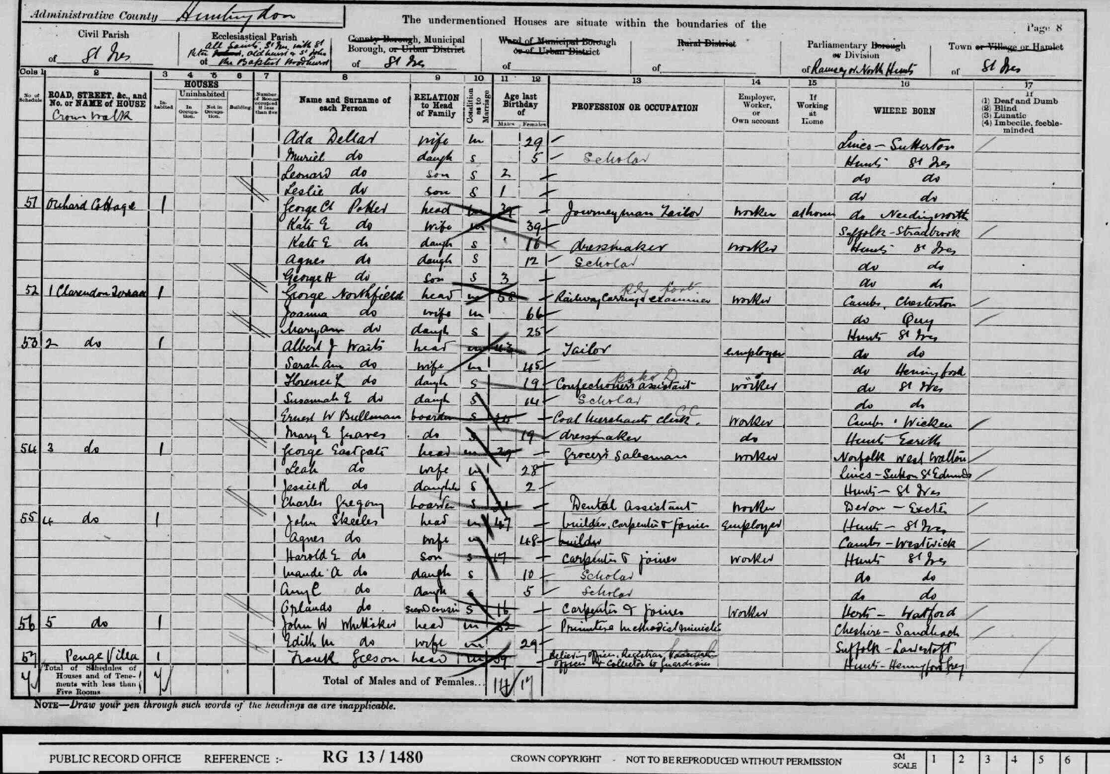• Lived at: 7 Orchard Terrace, Crown Walk, 1901, St. Ives, Huntingtonshire. 1