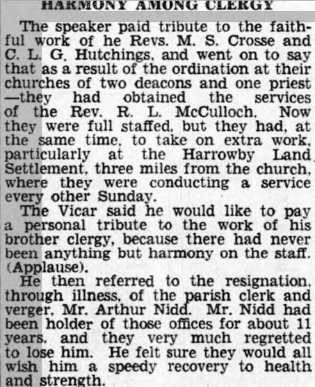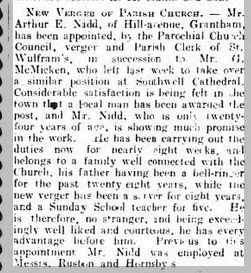 • Newspaper Article: resignation as verger, 1938, Grantham, Lincolnshire, England.