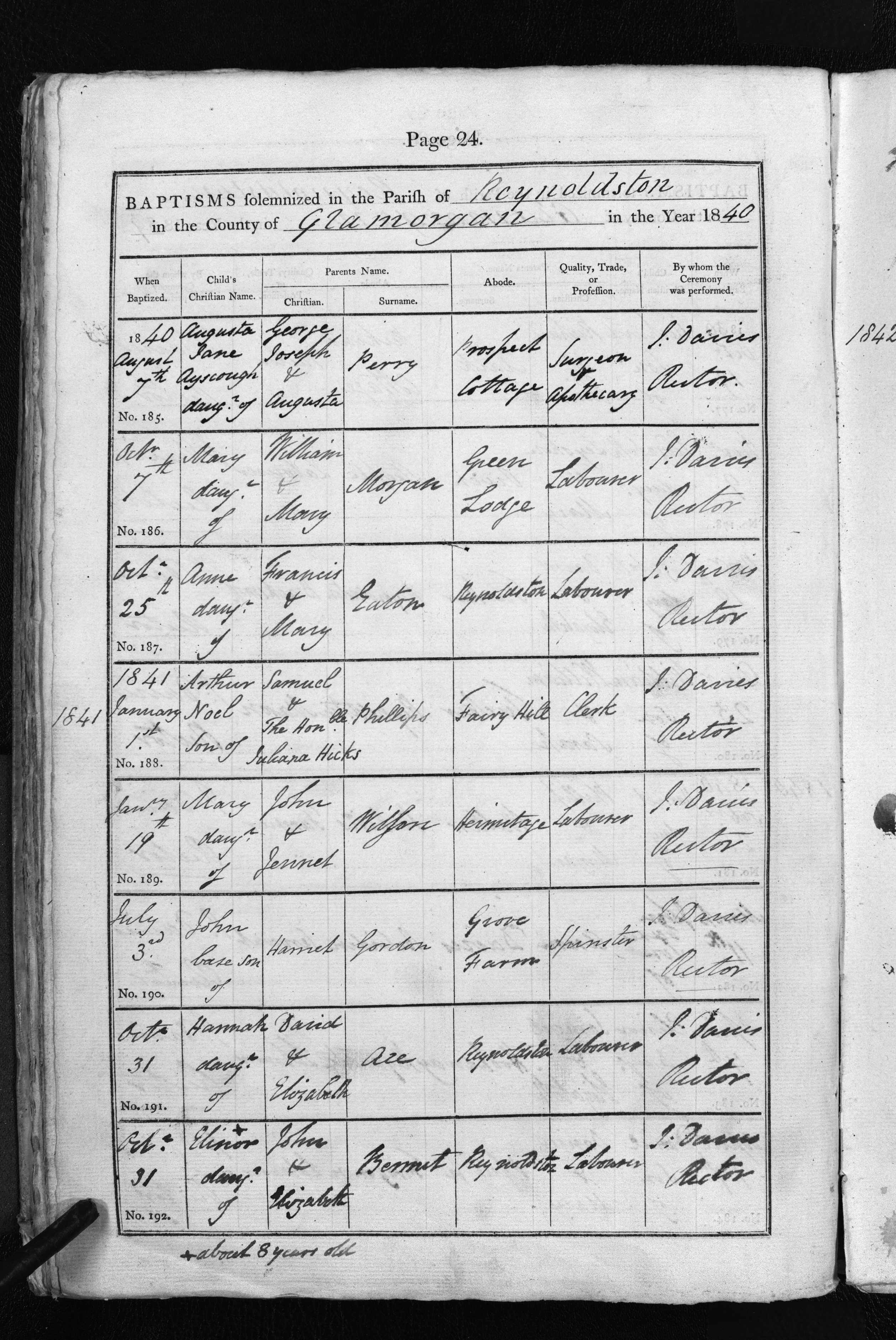 • Lived at: Reynoldstone, 1841-1851, Glamorgan, Wales. 7 8