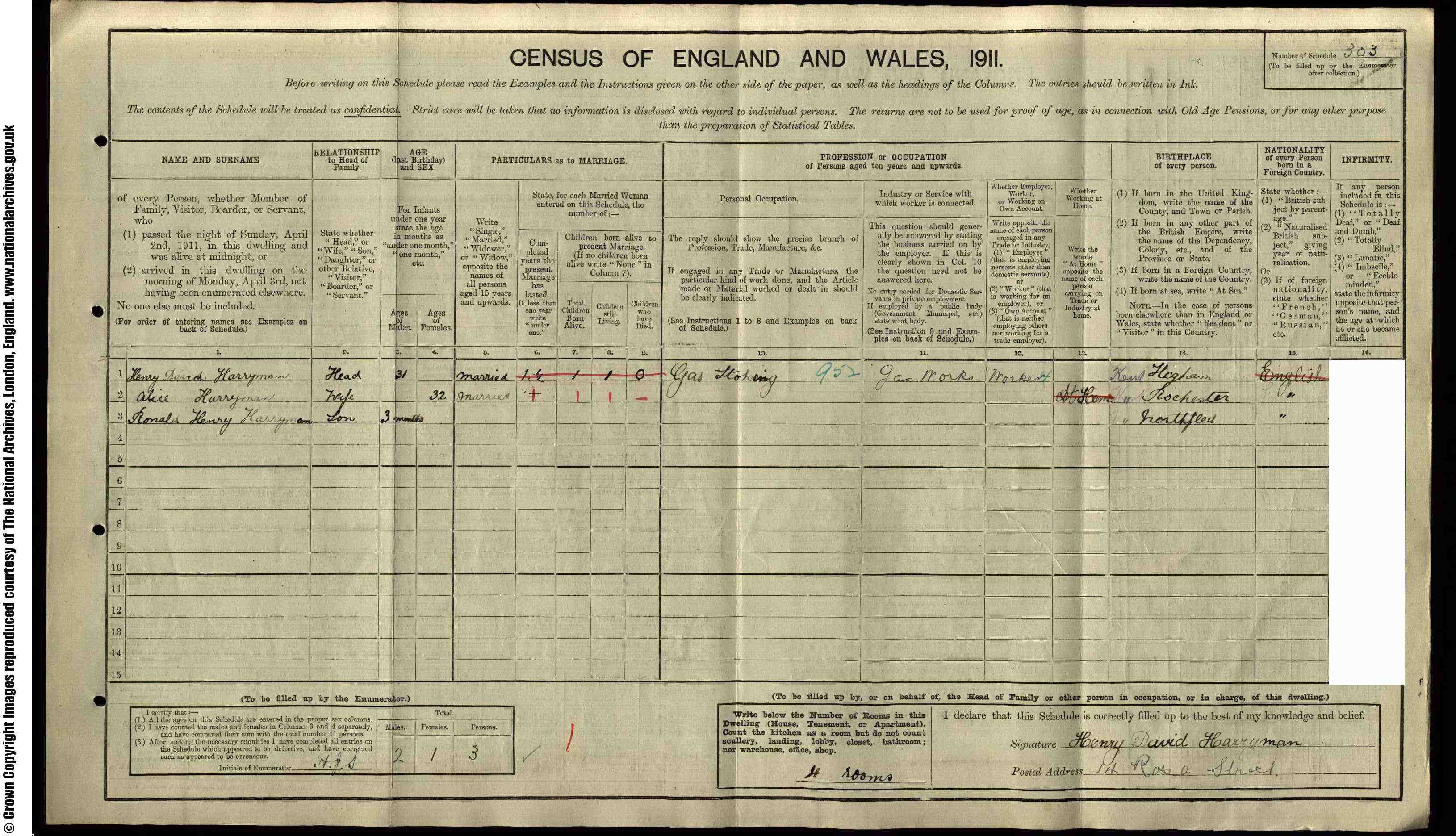 • Lived at: 14 Rose Street, 1911, Strood, Kent, England. • Occupation: Gas Stoking, 1911, Strood, Kent, England.