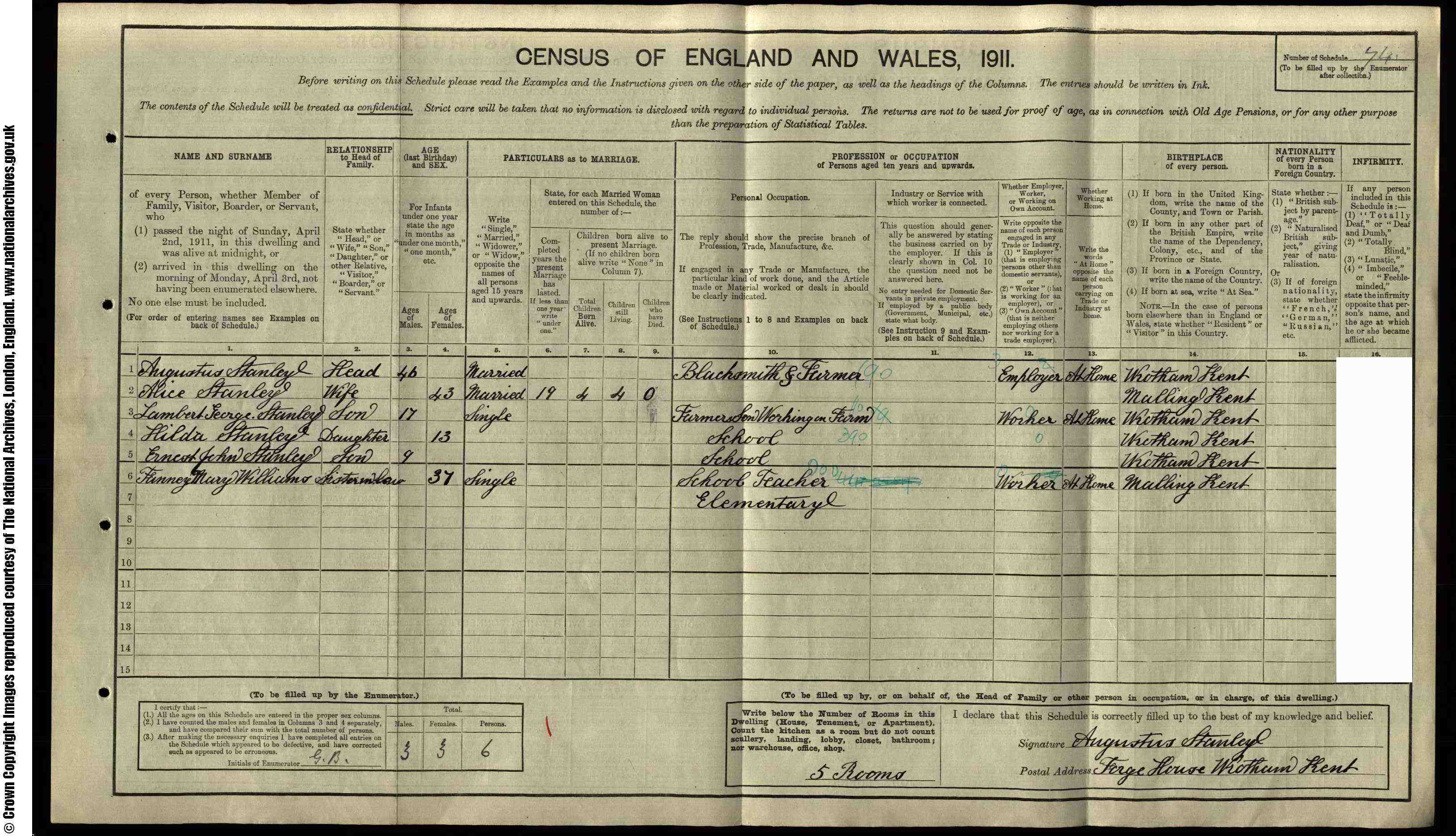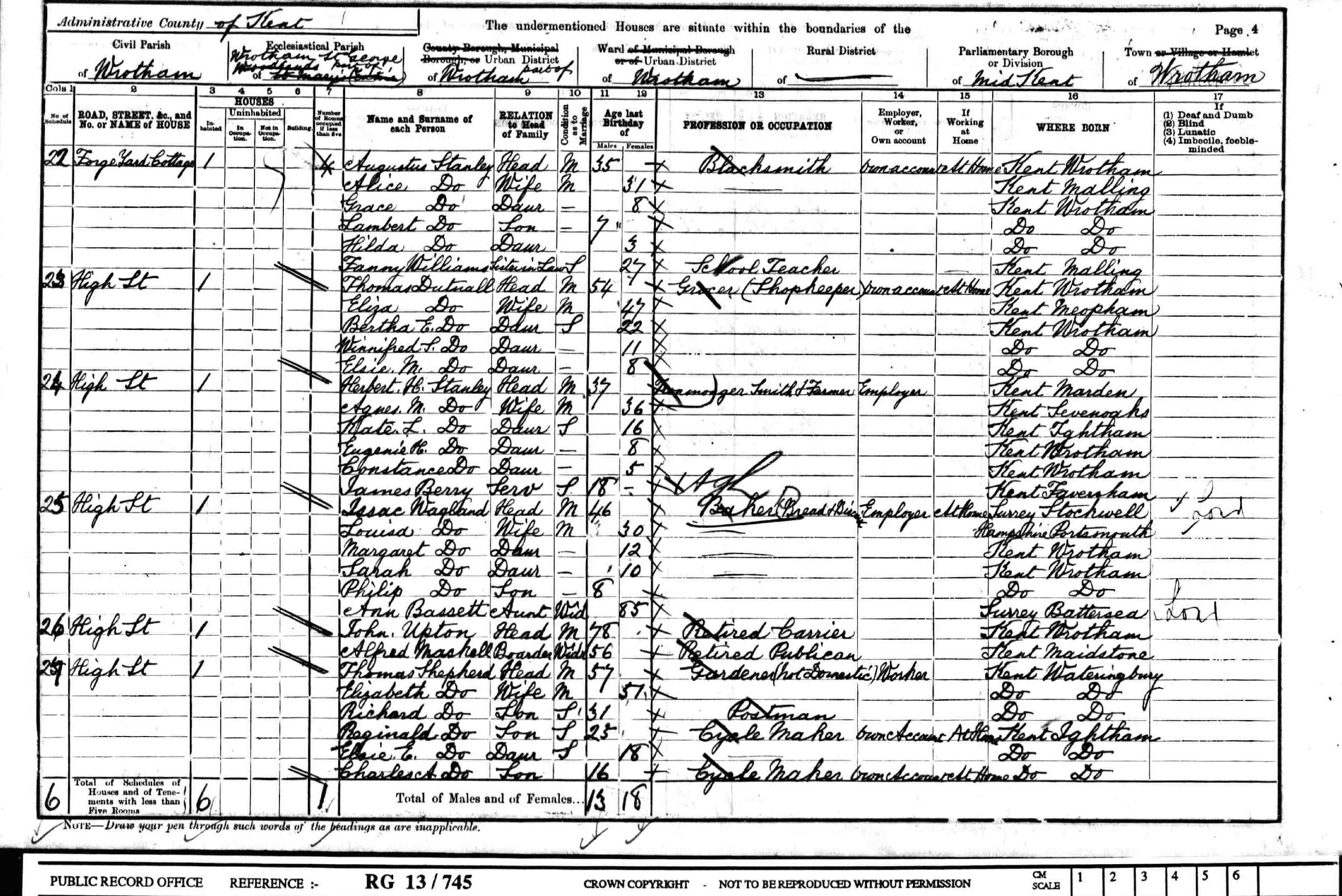 • Occupation: School Teacher, 1901, Wrotham, Kent, England. 1