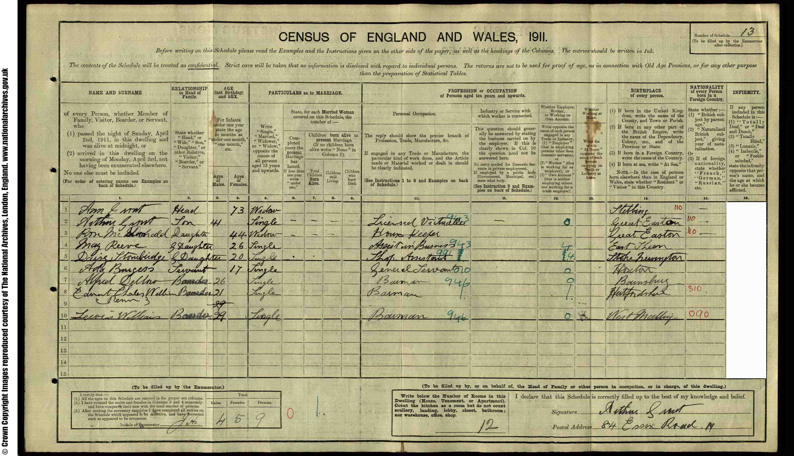 • Lived at: 84 Essex Road, 1911, Islington, London. • Occupation: Barman, 1911, Islington, London. |