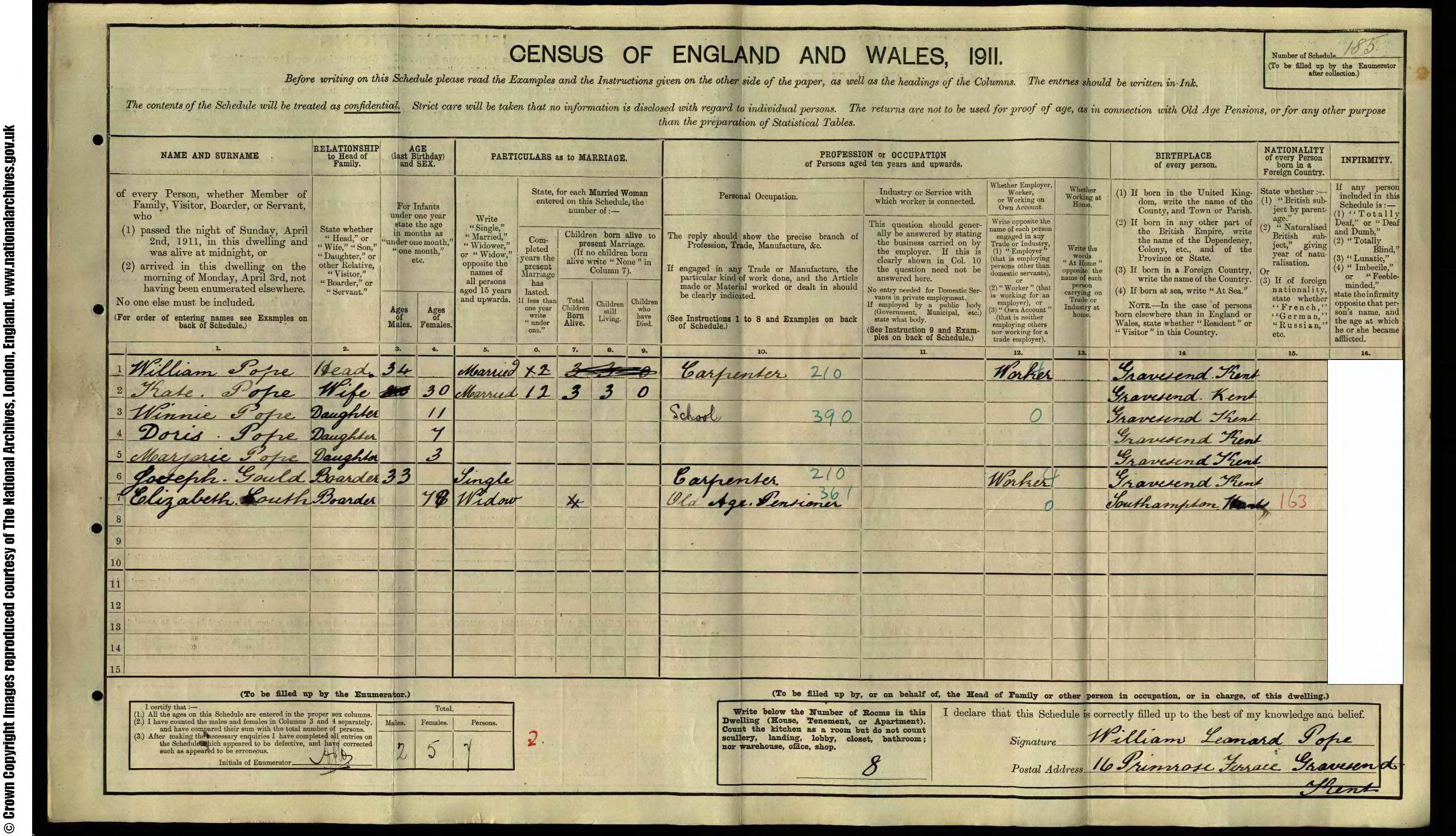 • Lived at: 16 Primrose Terrace, 1911, Gravesend, Kent, England.