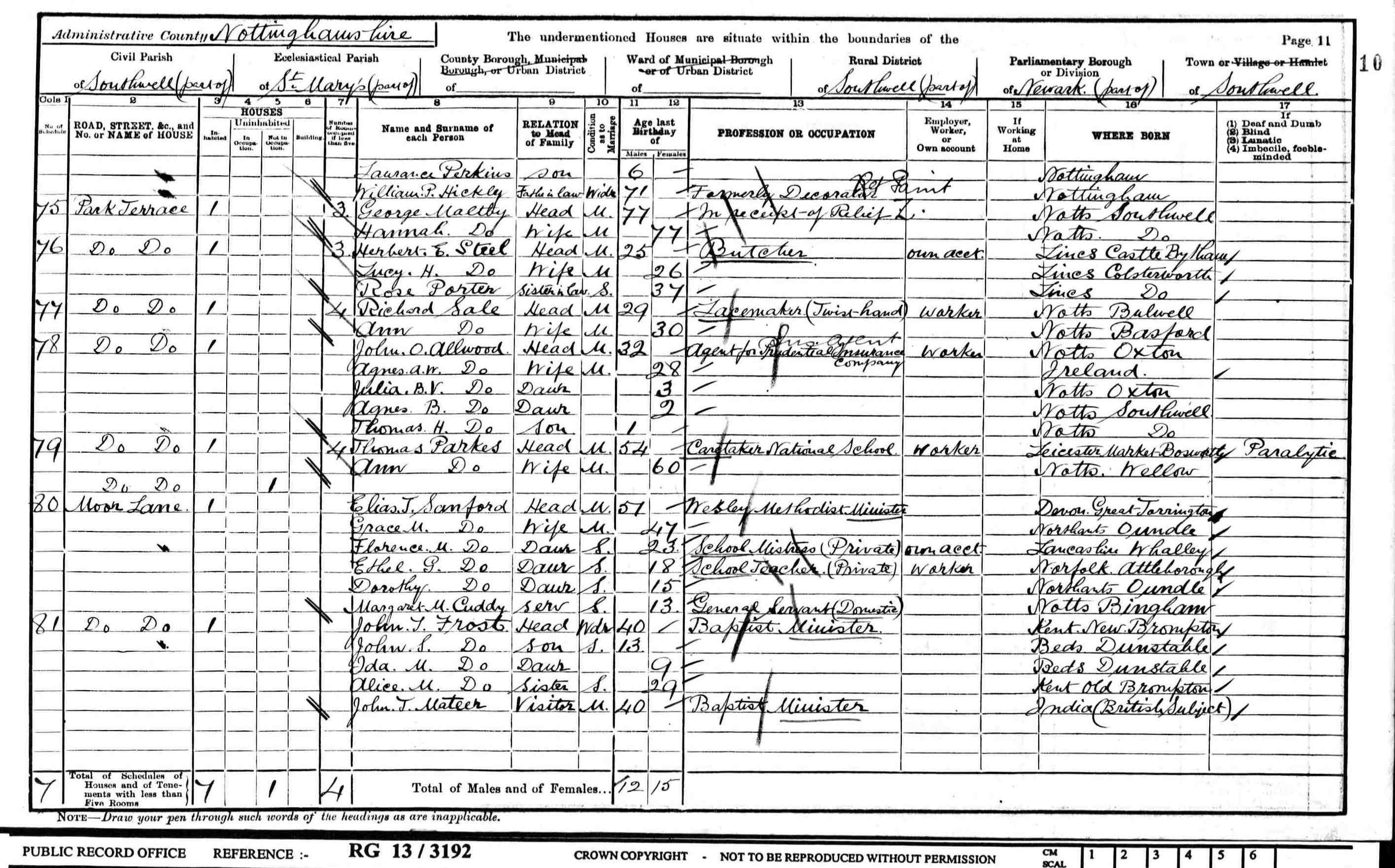 Events • Lived at: Morton, 1881, Bourne, Lincolnshire, England. 2 • Lived at: West Street, 1891, Oundle, Northampton, England, Great Britain. 3 • Occupation: Butcher's Apprentice, 1891, Oundle, Northampton, England, Great Britain. 3 • Lived at: Park Terrace, 1901, Southwell, Nottinghamshire. 1