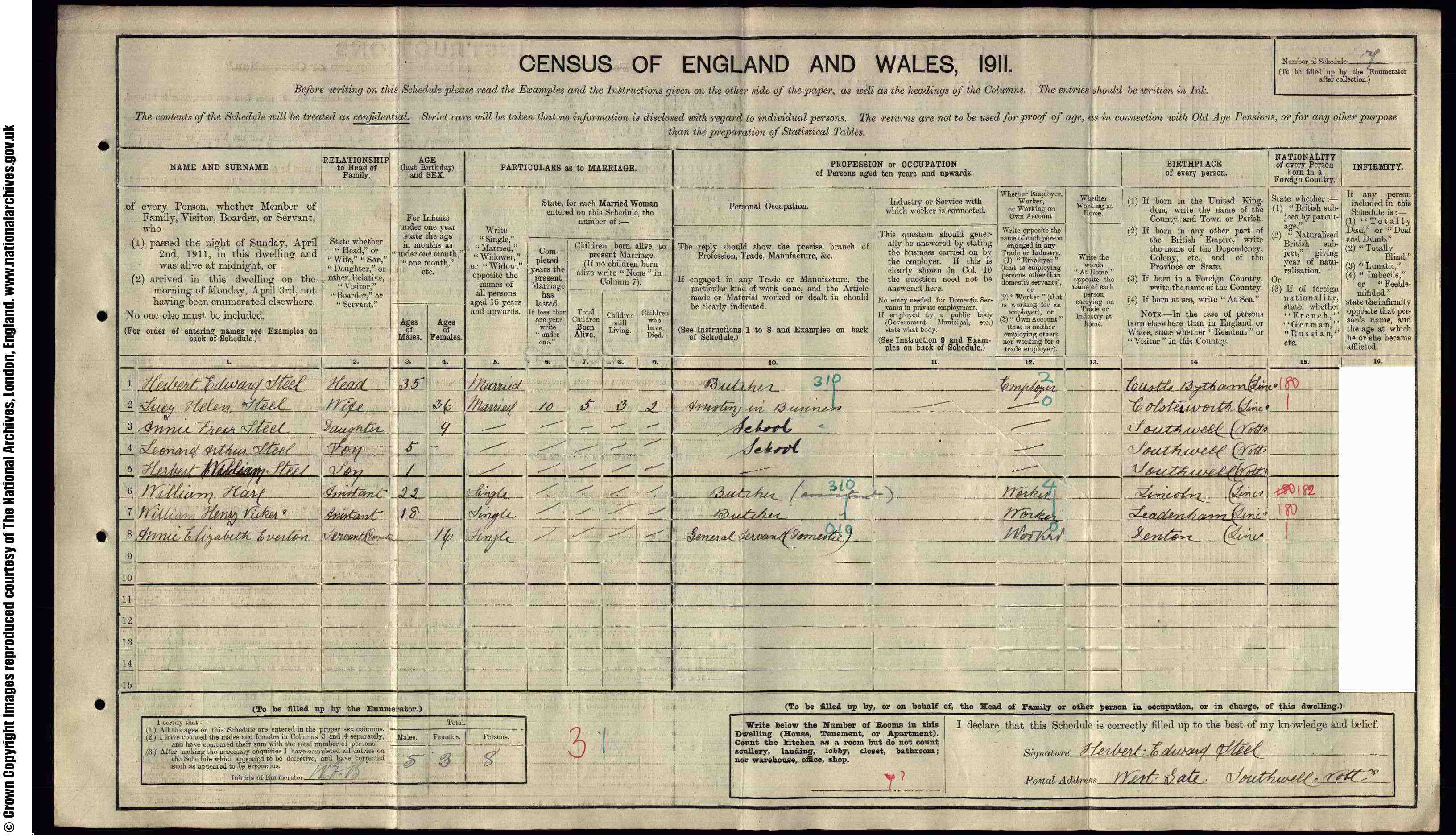 • Occupation: Butcher, 1901, Southwell, Nottinghamshire. 1
