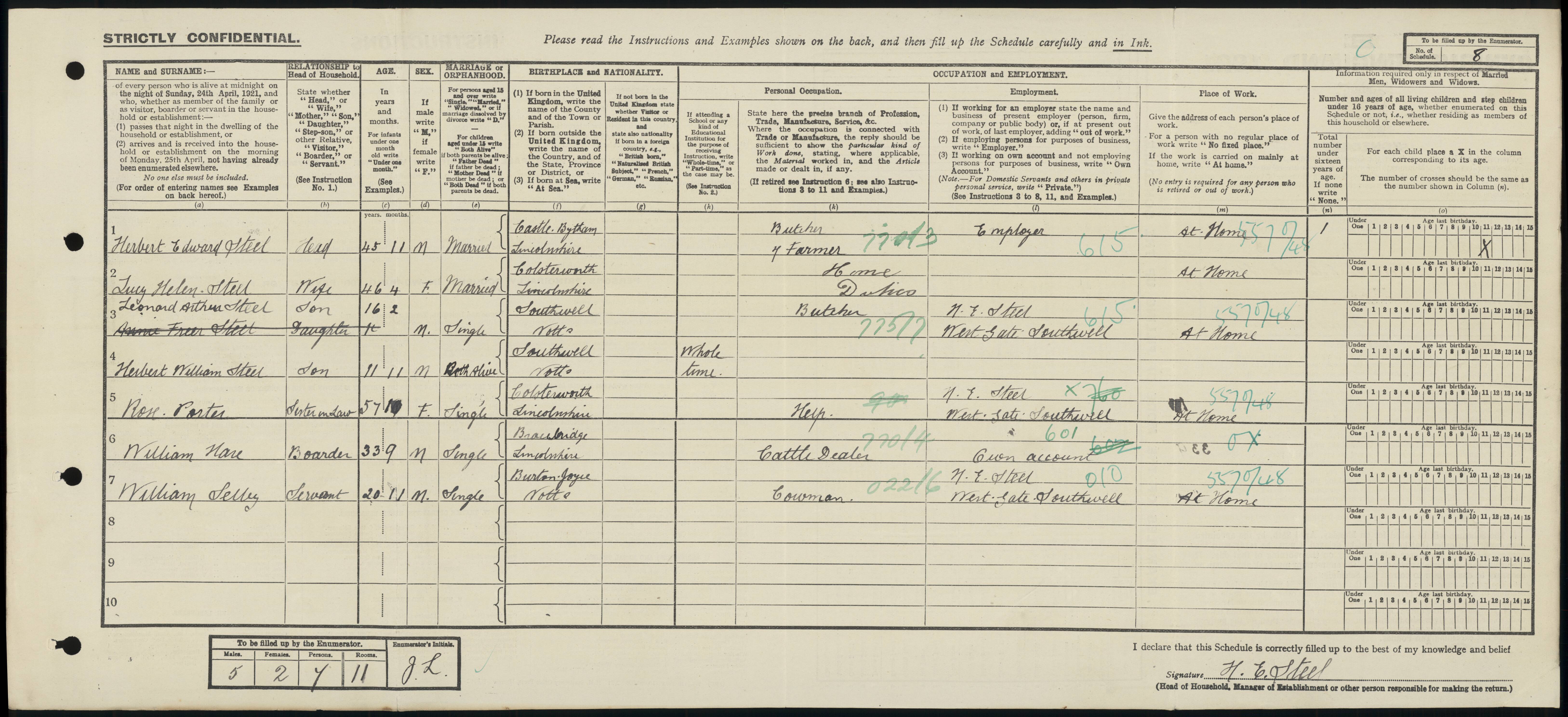 • Occupation: Butcher, 1911, West Gate, Southwell, Notts.