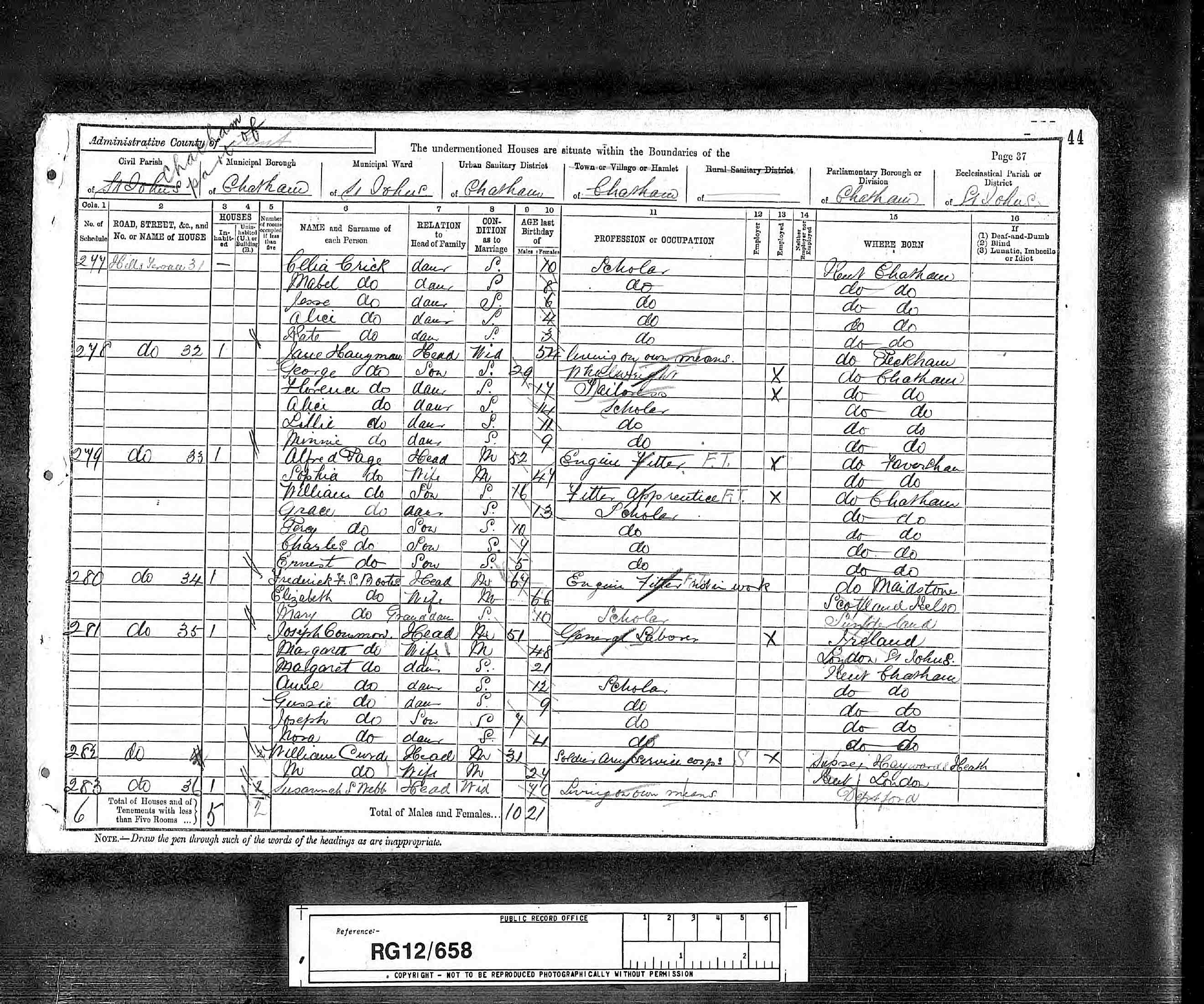 (1891 English and Welsh Census(London, TNA/Ancestry.co.uk, 1992) , Web site showing copies of original enumerator schedules) ID: CEN 1891 RG12, CEN 1891 rg12 658 44 37. Cit. Date: 22 Sep 2006. Cit. ID: CEN 1891 rg12 658 44 37. Surety: 2.
