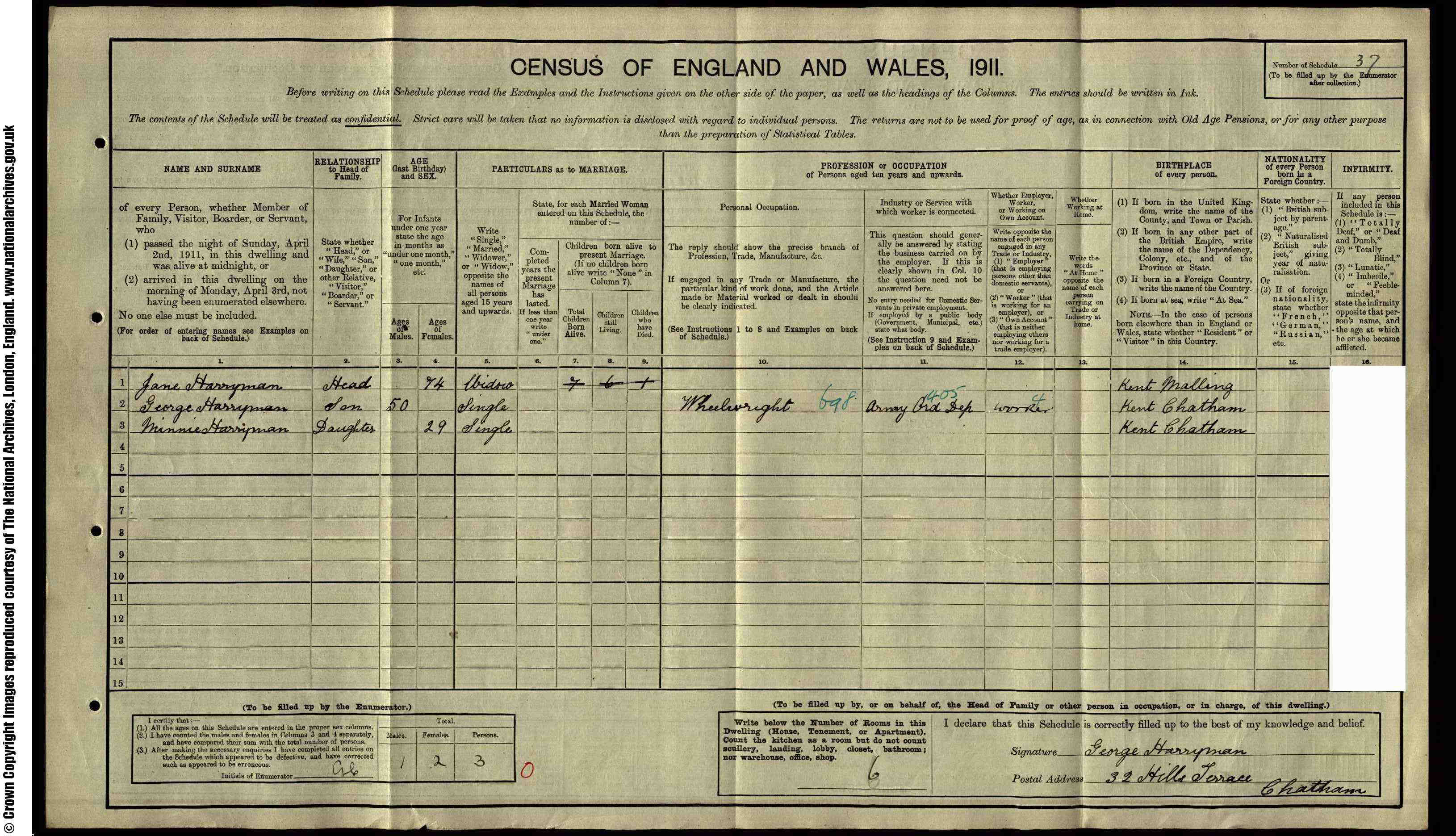 • Lived at: 32 Hills Terrace, 1891-1911, Chatham, Kent, England. 1 3