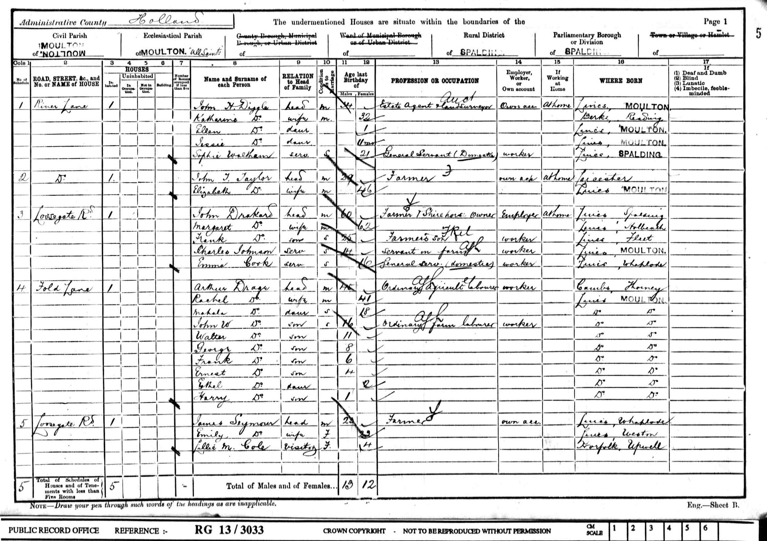 • Lived at: Mill Gate, 1881, Whaplode, Lincolnshire. 2 6 • Occupation: Entire House Proprietor, 1881, Whaplode, Lincolnshire. 2 6