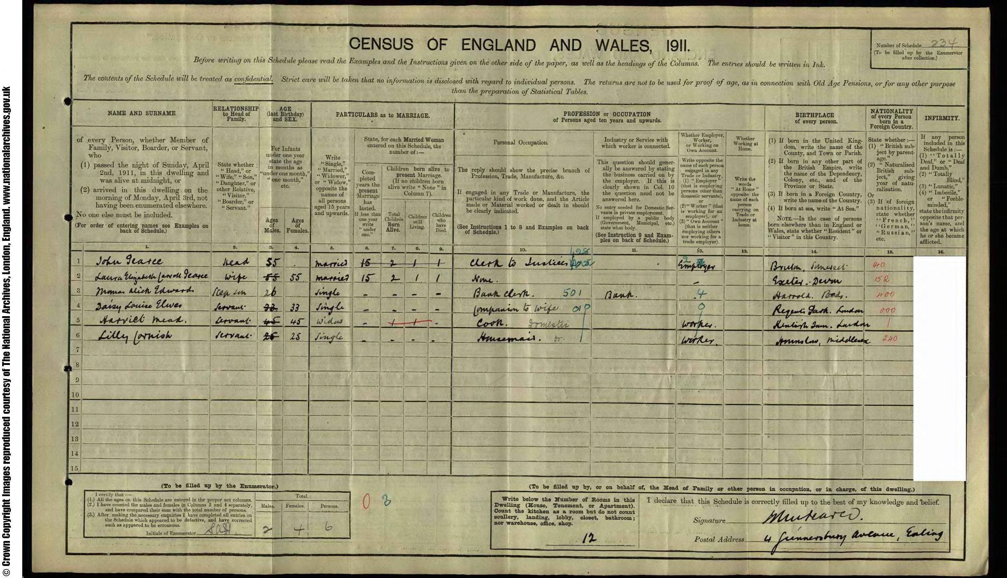 • Occupation: Companion, 1911, Brentford, Middlesex, England.