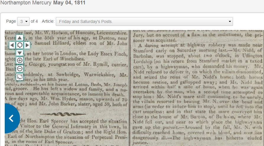• Newspaper Article: attacked by Highwaymen, 1811, en route to Barholm from Stamford. • Occupation: Farmer and Grazier, 1811, Barholm, Lincolnshire, England. 1 |