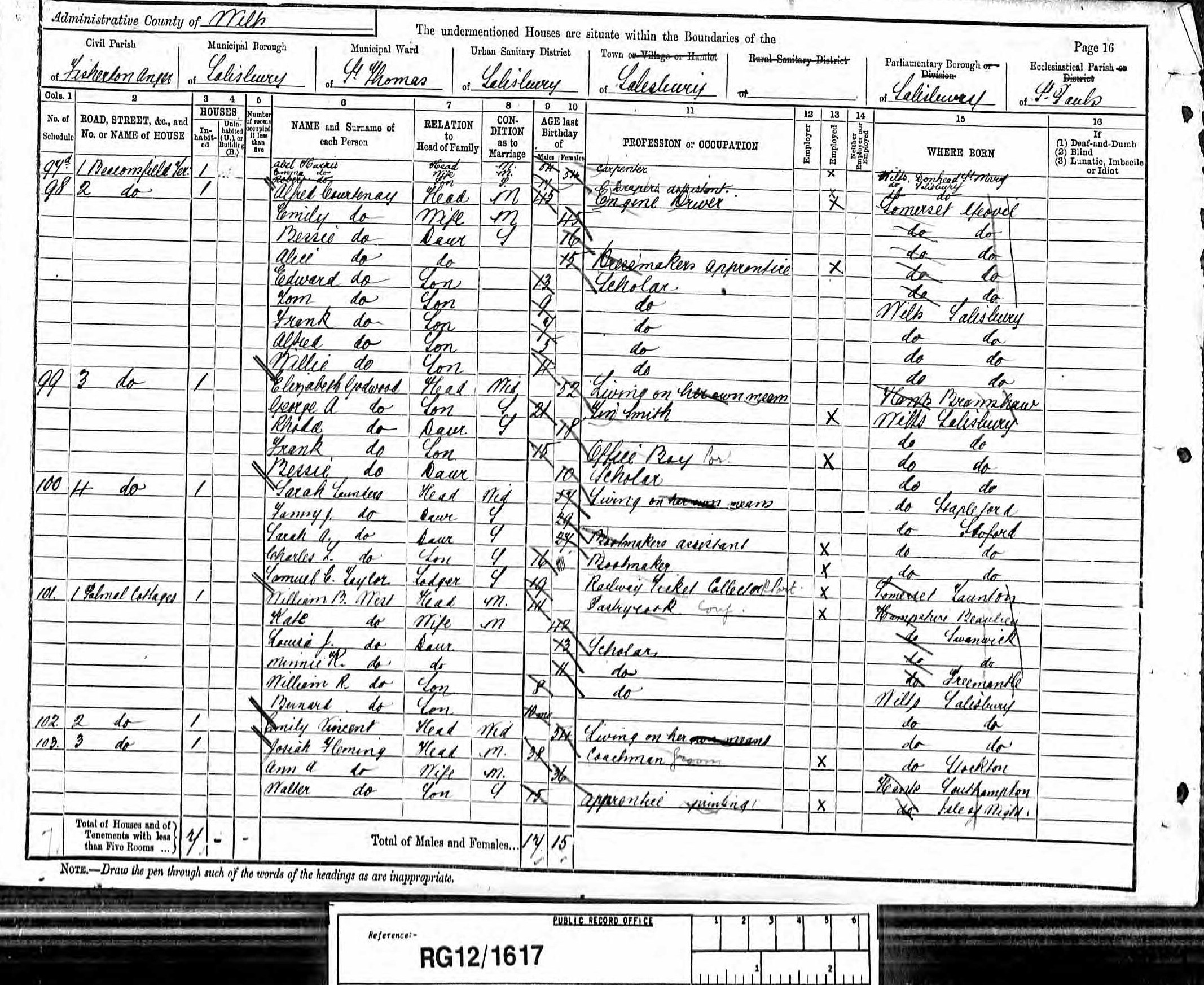 • Lived at: 2 Beaconsfield Terrace, 1891, Fisherton Anger, Salisbury.