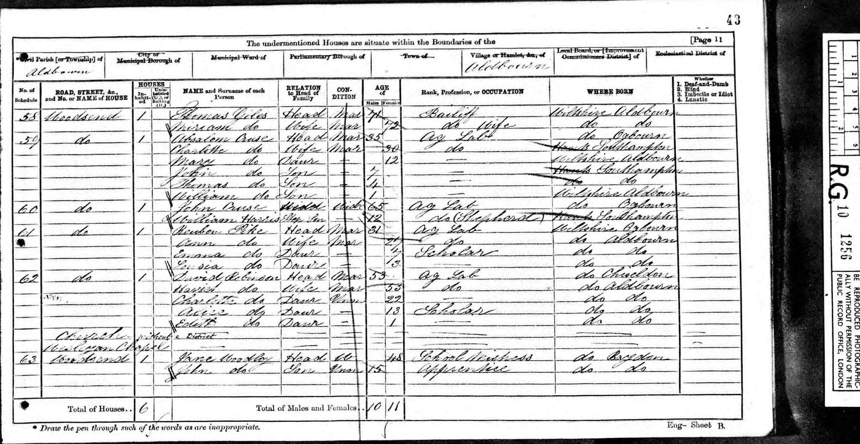 • Lived at: Woodsend, 1871, Aldbourne, Wiltshire, England. • Lived at: 68 Eastcott Hill, 1881, Swindon, Wiltshire, England. Charlotte married Absalom Cruse on 5 Nov 1859 in Ogbourn, St George. (Absalom Cruse was born circa 1836 and died after 1911.) |