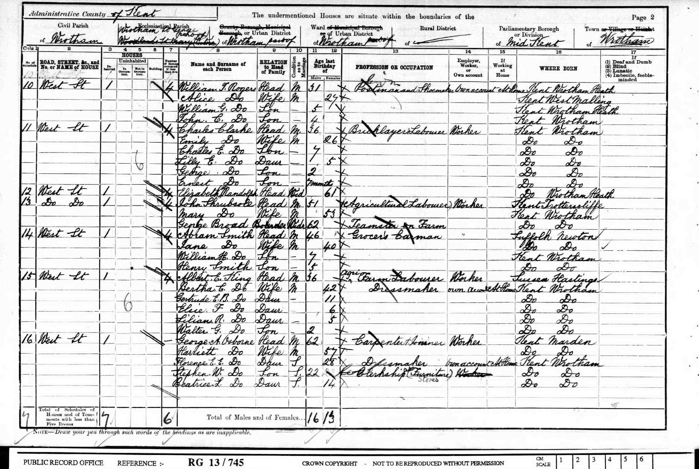 • Lived at: West St, 1901, Wrotham, Kent, England.