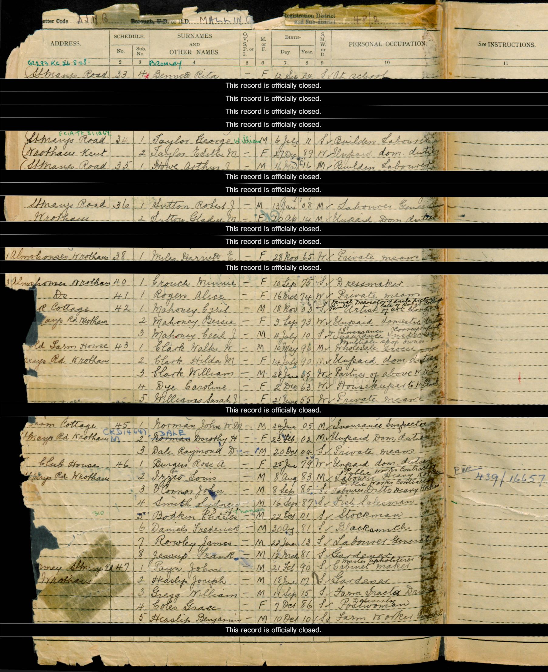 • Lived at: West Street, 1921, Wrotham, Kent, England.