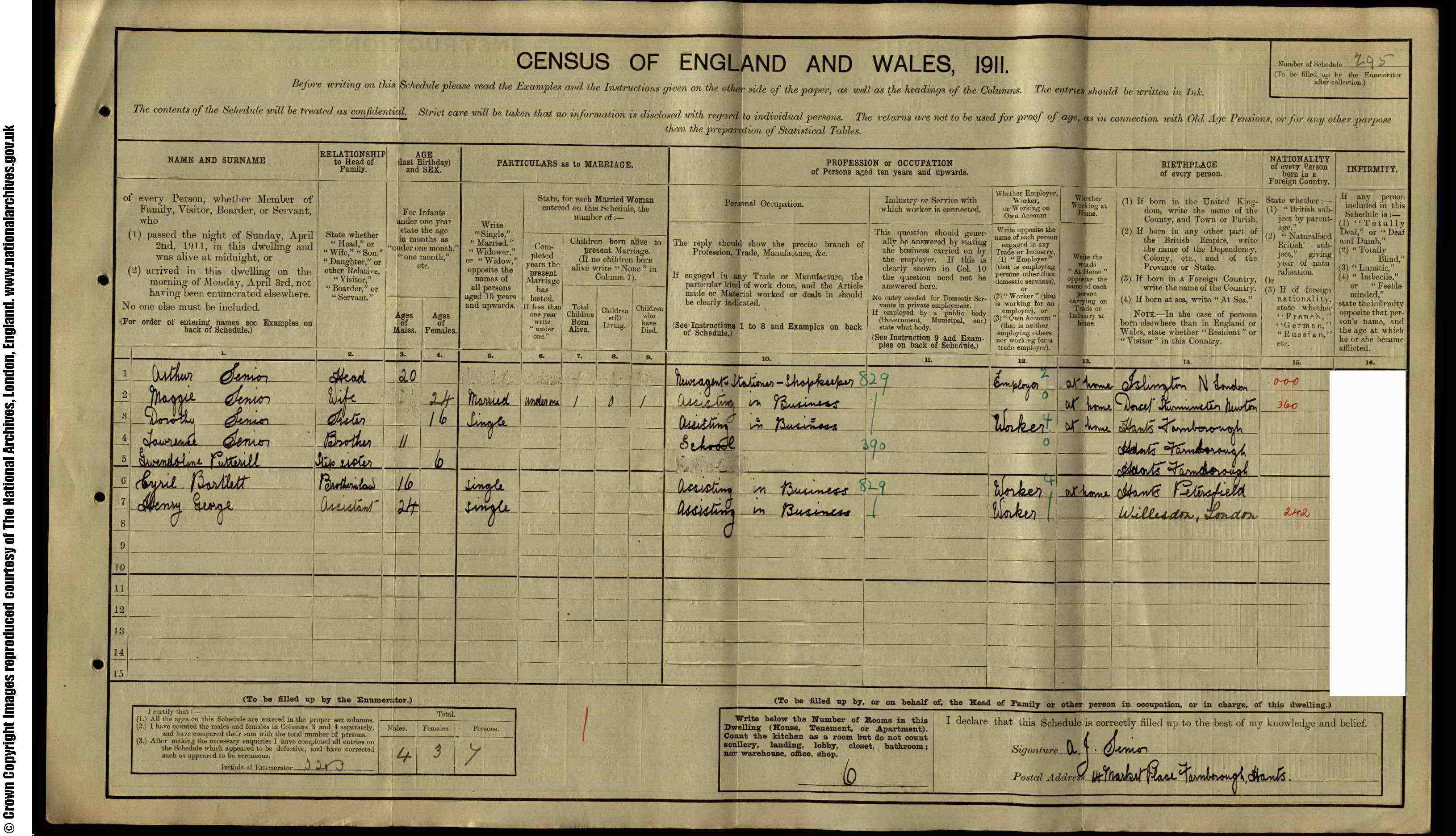 • Lived at: 4 Market Place, 1911, Farnborough, Hampshire, England. • Occupation: Working in Sister and BIL's Newsagent Business, 1911, Farnborough, Hampshire, England. • Boarded: 10 Grape Terrace, High Street, 1921, Farnborough, Hampshire, England. • Occupation: Commerical Labourer royal army service corps, 1921, Farnborough, Hampshire, England.