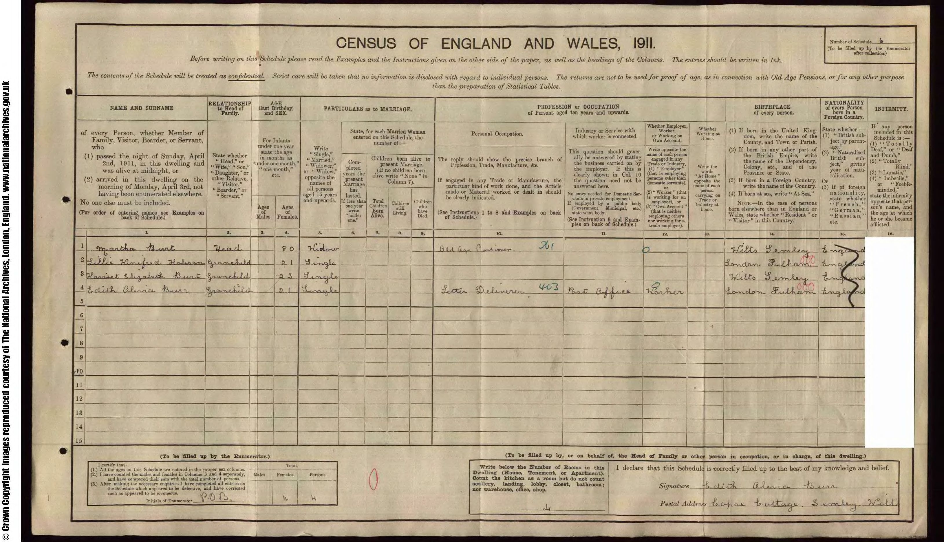 • Lived at: Copse Cottage, 1911, Tisbury, Wiltshire, England. |