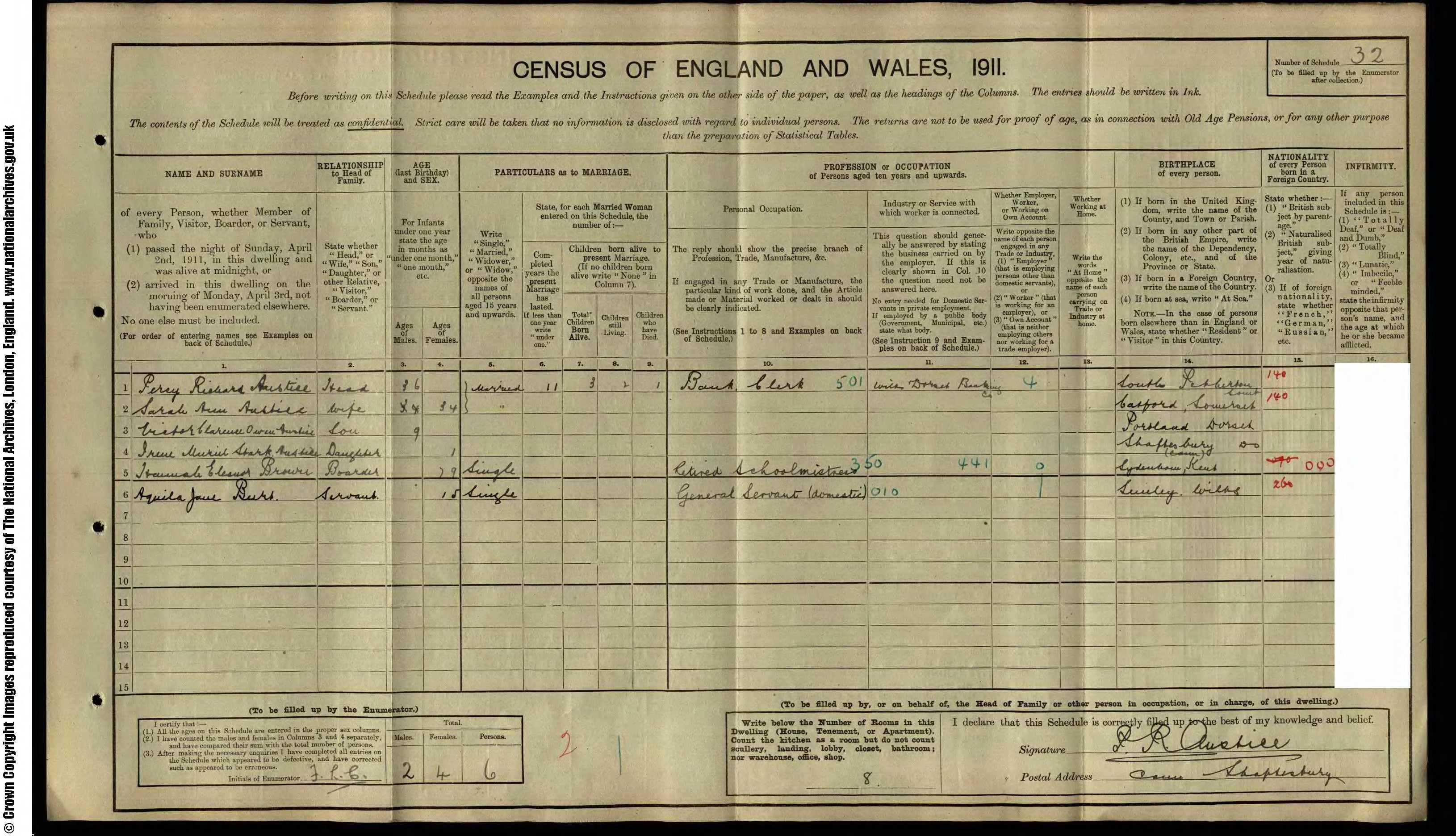 • Lived at, 1911, Shaftesbury, Dorset, England.