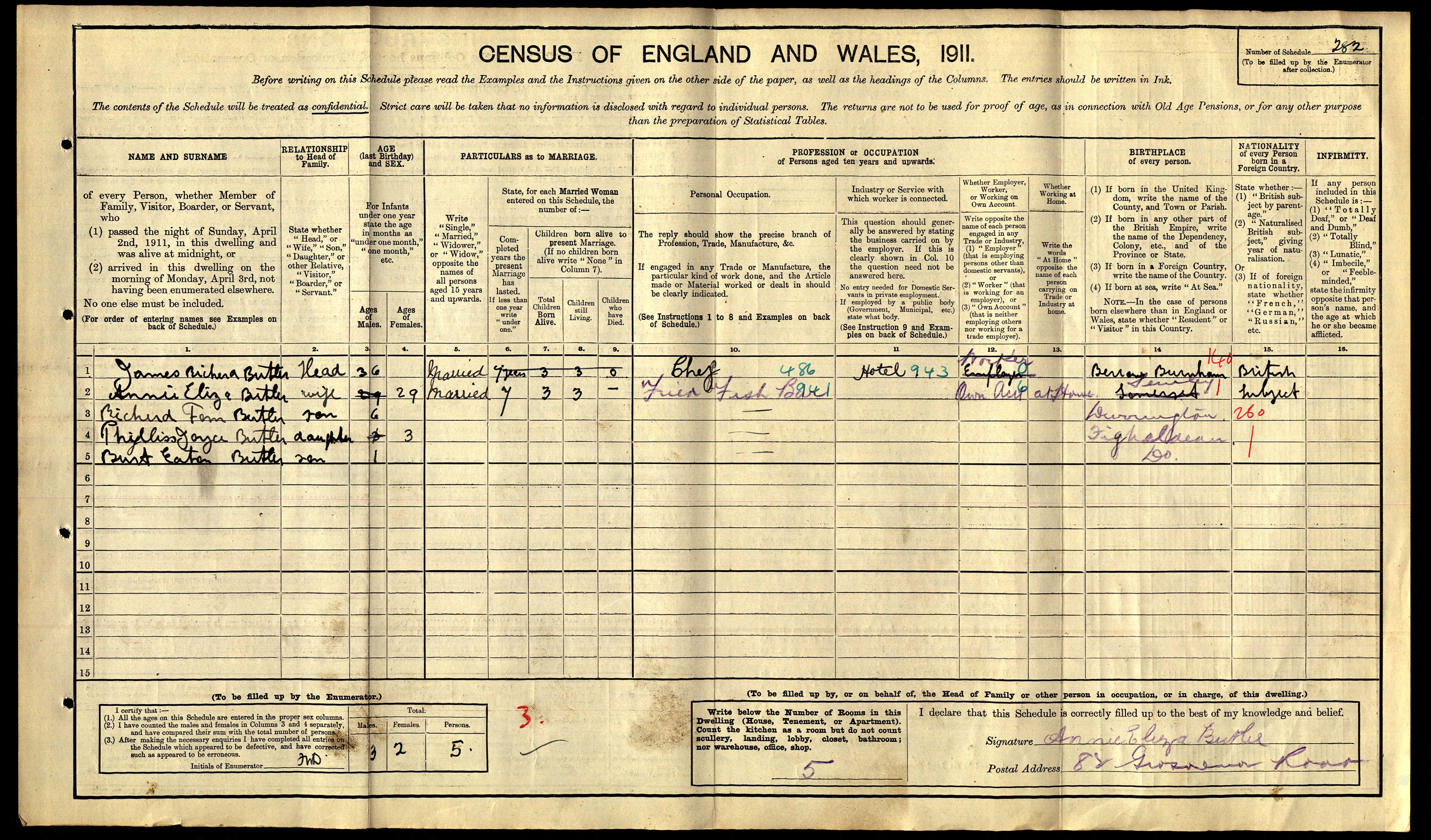 • Lived at: 82 Grosvenor Road, 1921, Bristol, Gloucestershire, England. Annie married James Richard Butler on 8 Jul 1904 in Semley Church, Semley, Wiltshire, England. (James Richard Butler was born in 1874 in Burham, Somerset and died Jun Q 1945 in Bristol, Gloucestershire, England,.) |