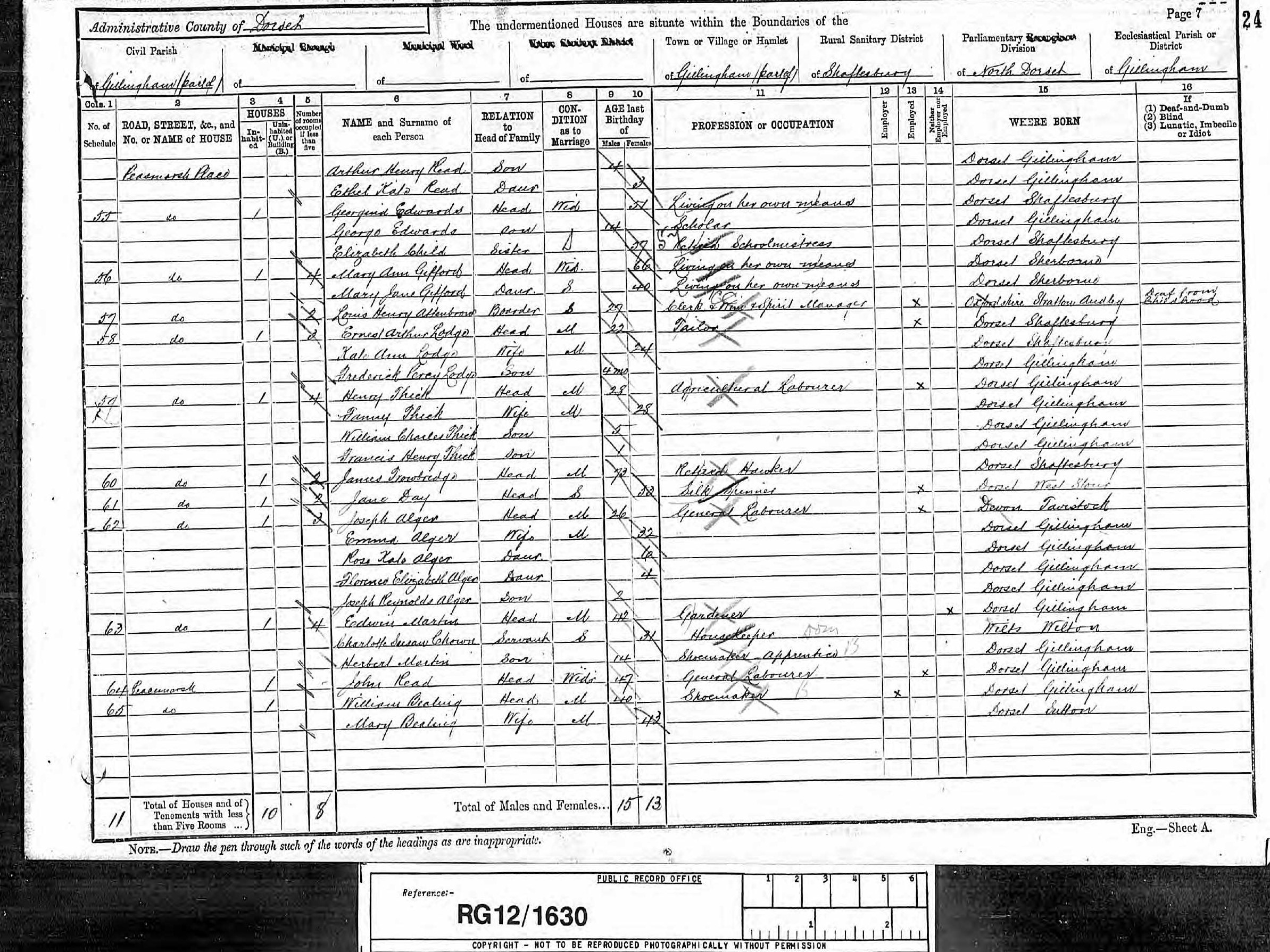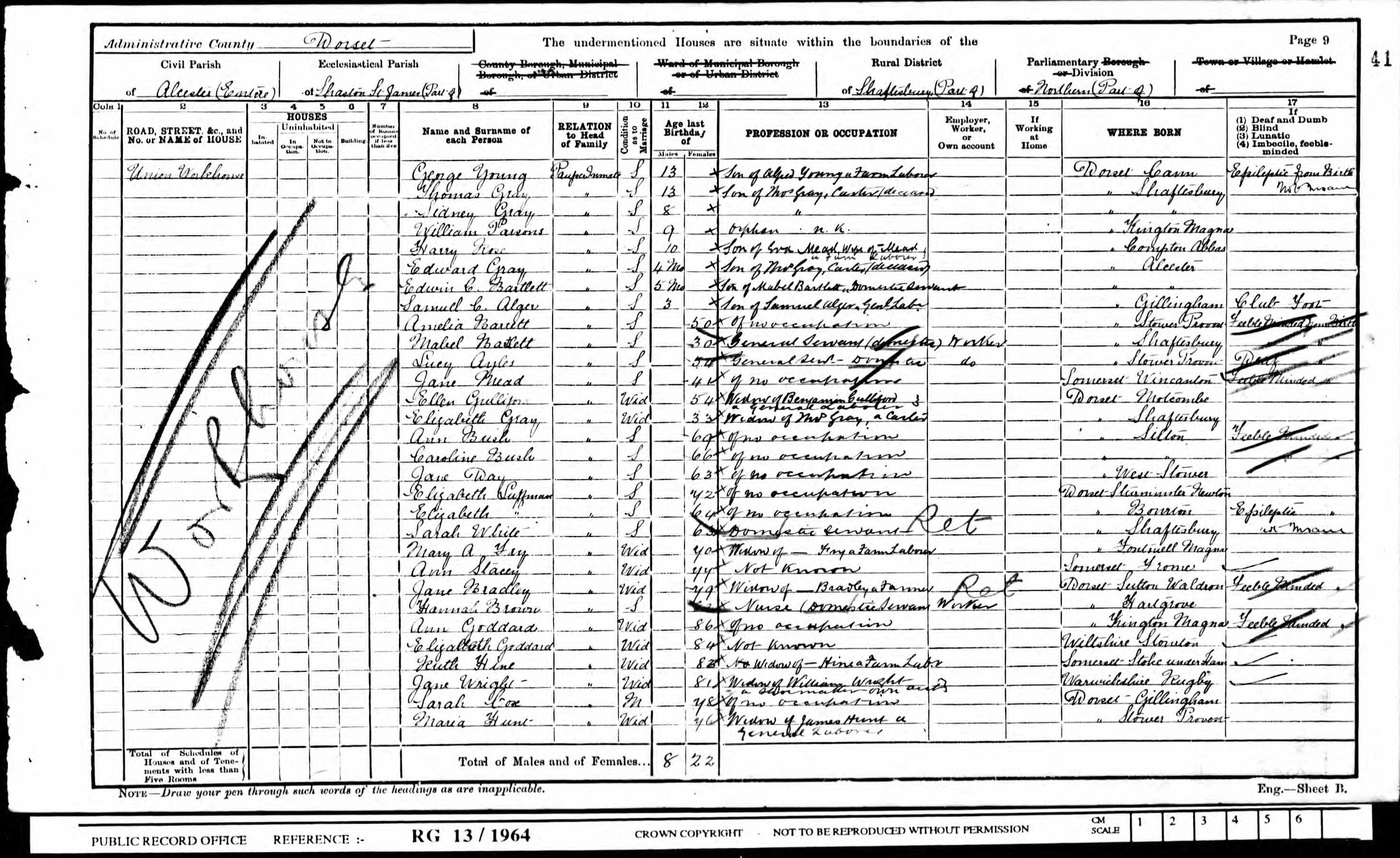 • Lived at: Peaseworth Place, 1891, Gillingham, Dorset, England.