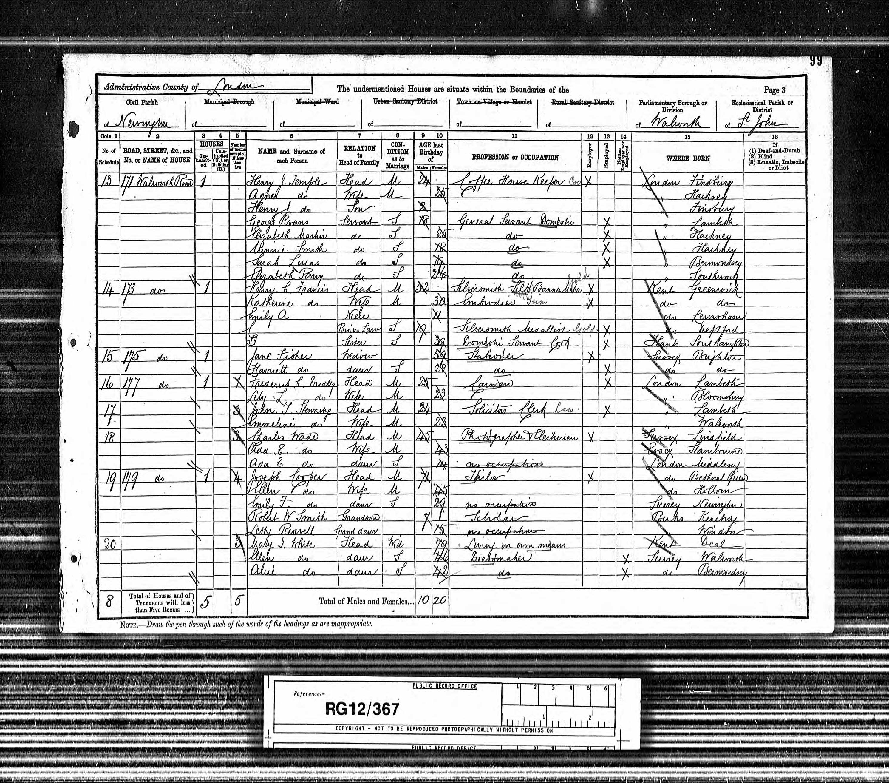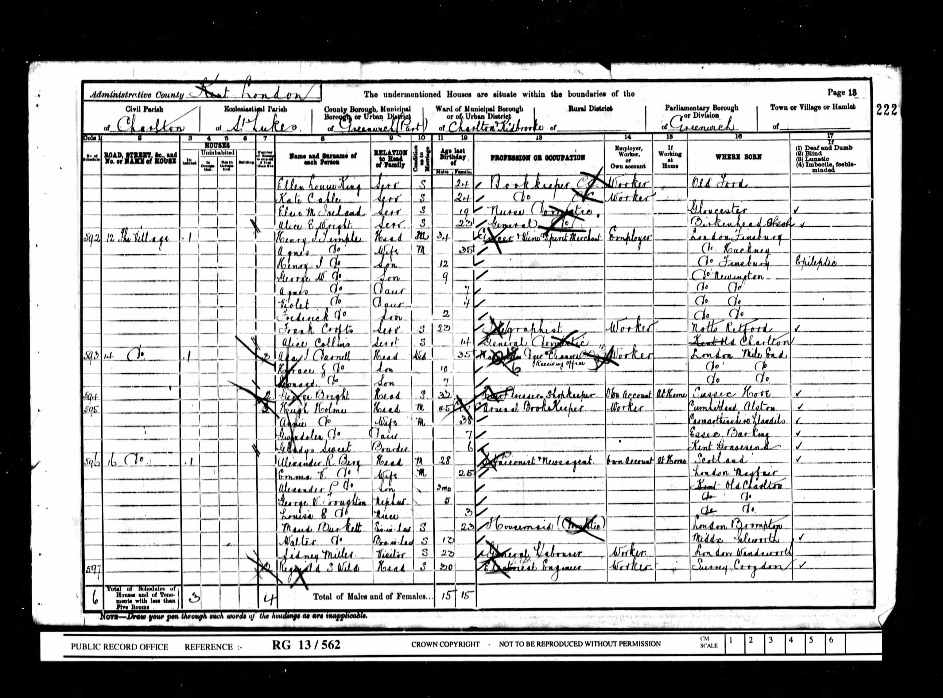 • Lived at: 12 the Village, 1901, Greenwich, Kent, England. • Occupation: Grocer, Licenced Wine and Spirit, 1901, Greenwich, Kent, England.