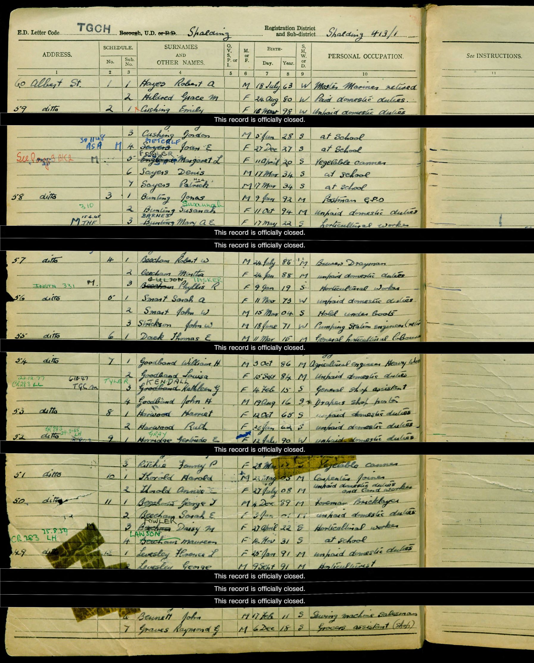 • Lived at: 53 Albert Street, 1939, Spalding, Lincolnshire, England. |
