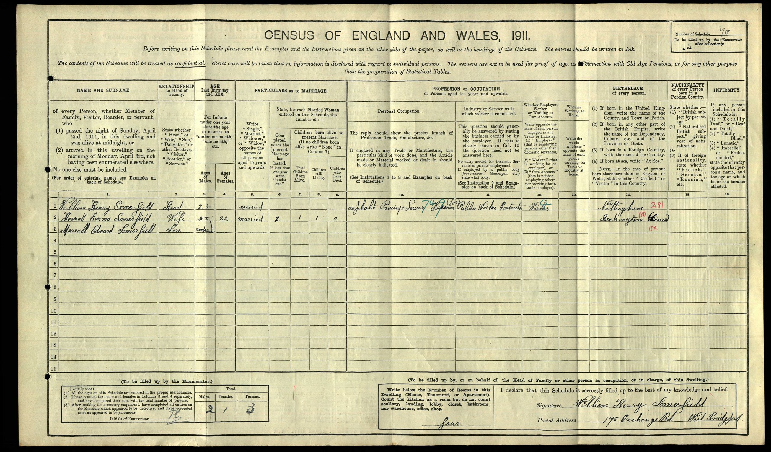 • Lived at: Nottingham, 1911.