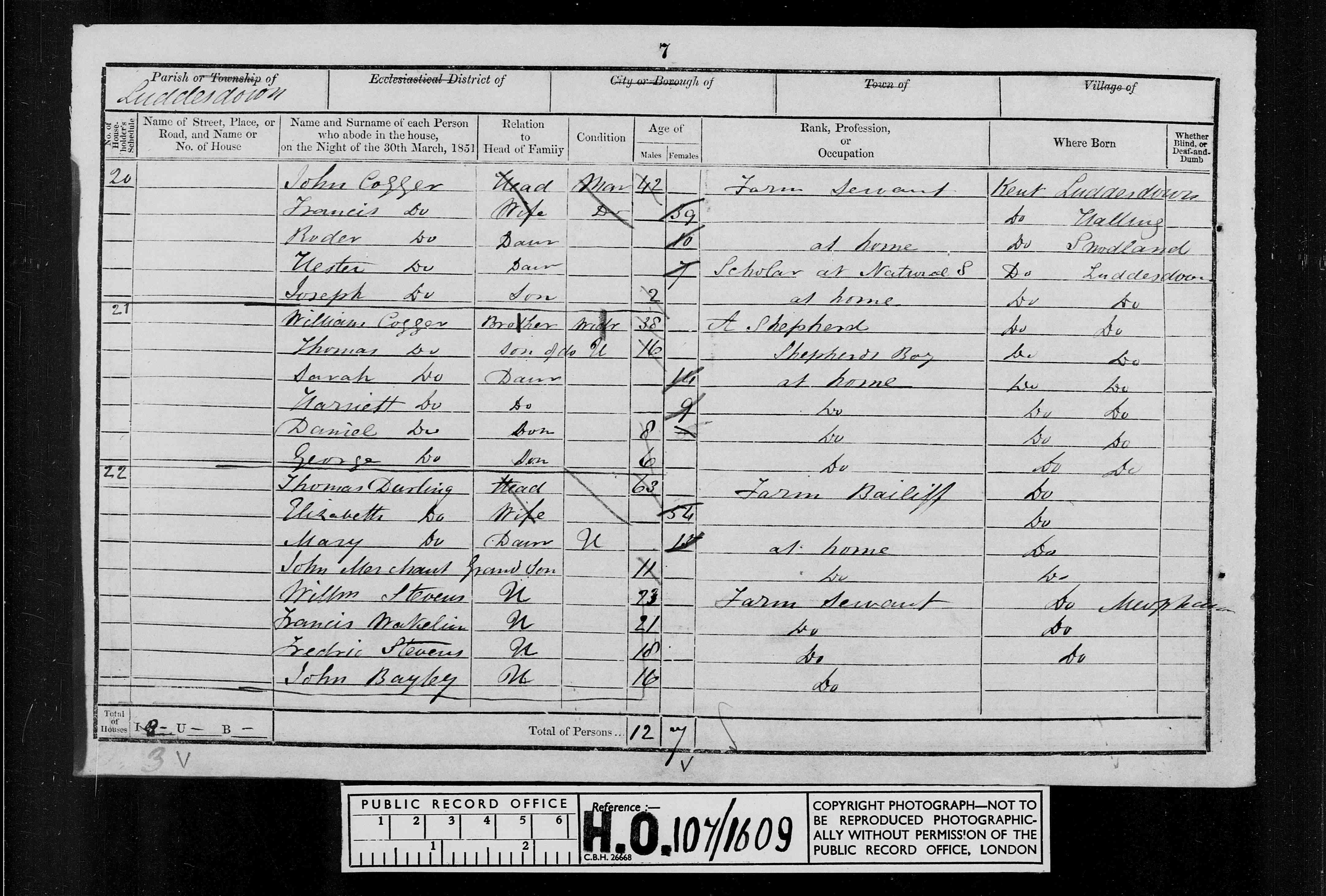 • Occupation: Farm Labourer, 1851, Luddesdown, Kent, England.