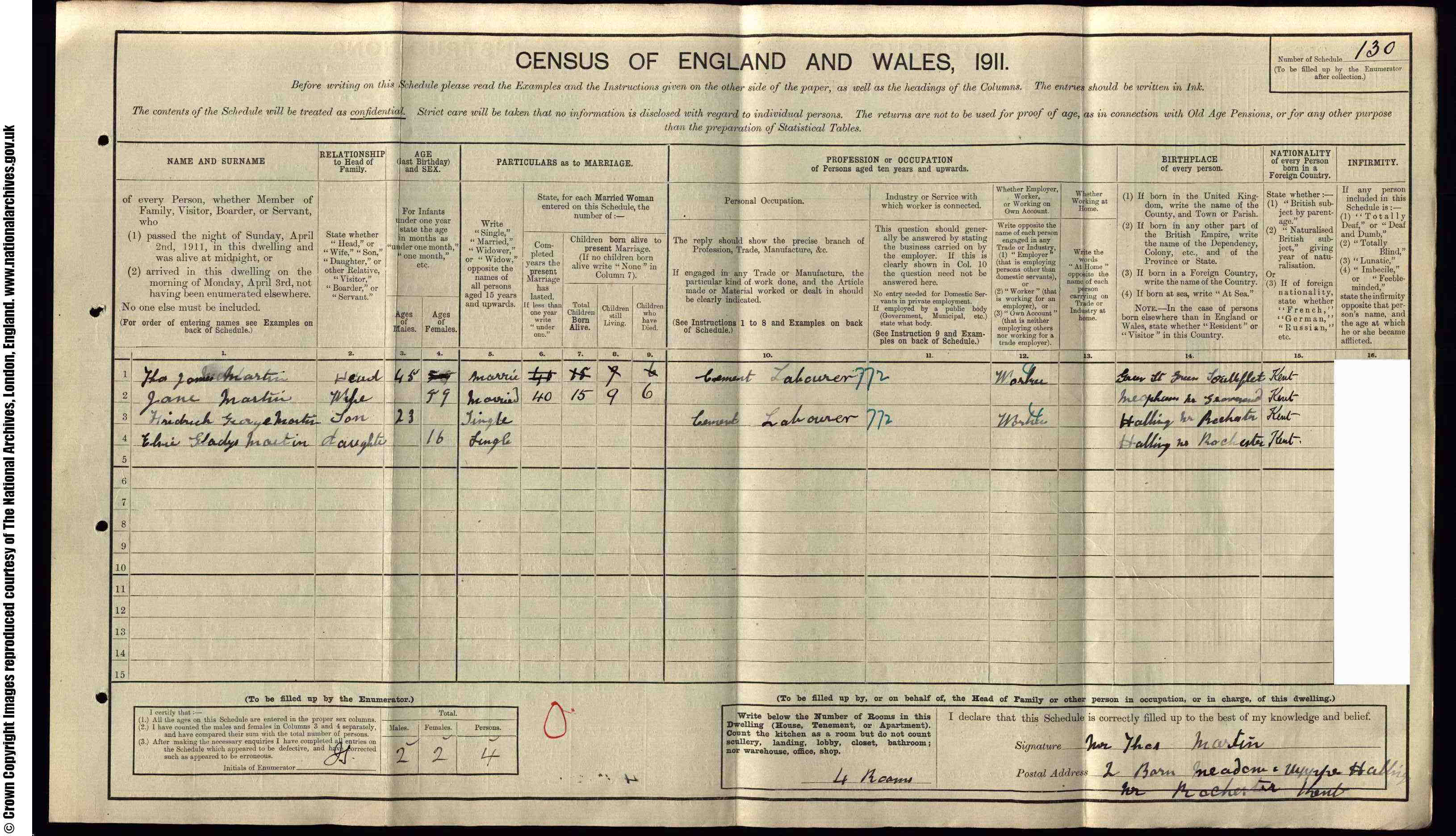 • Lived at: 2 Barn Meadow, 1911, Upper Halling, Kent.