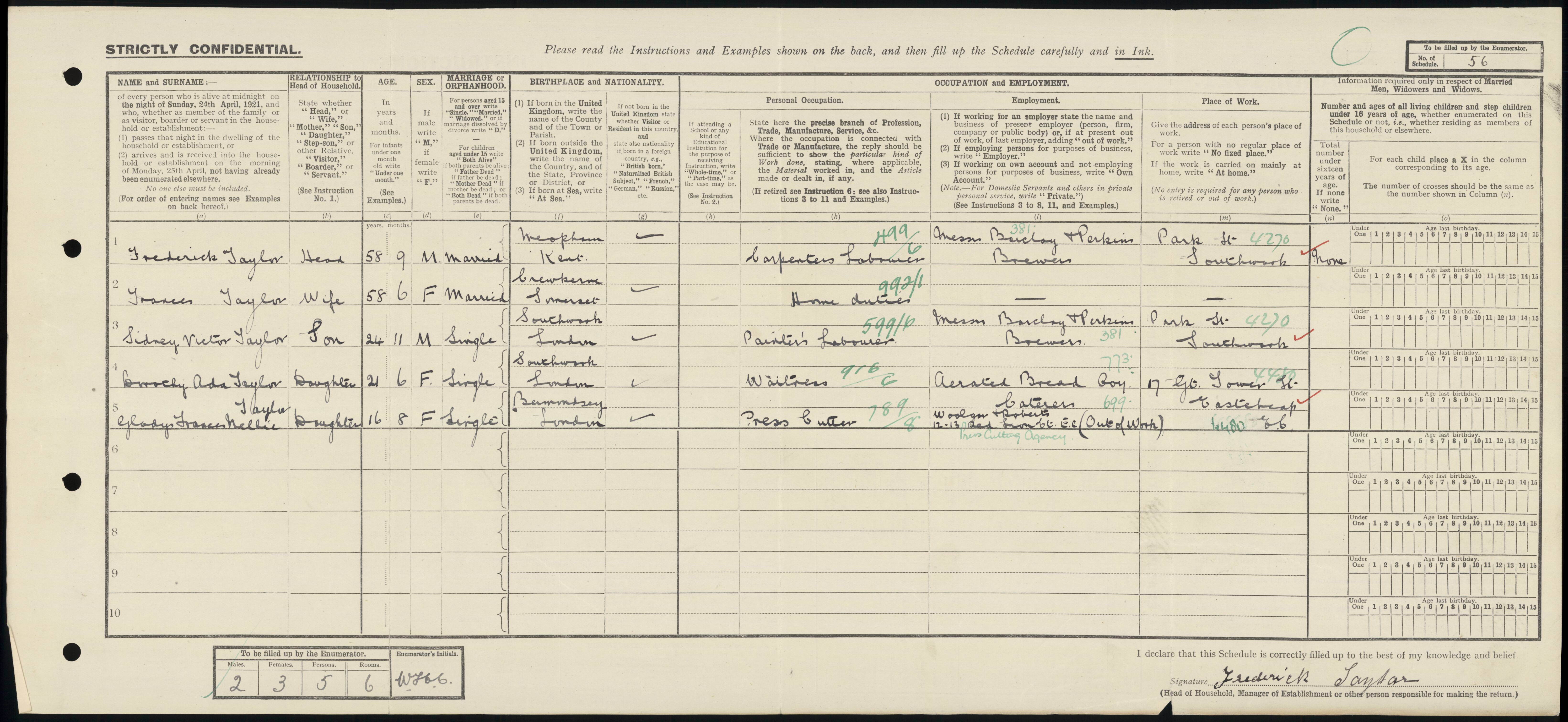 Sidney Victor Taylor 1Events • Lived at: 3. M Block Peabody Buildings, 1901, Southwark, Surrey, England. 1