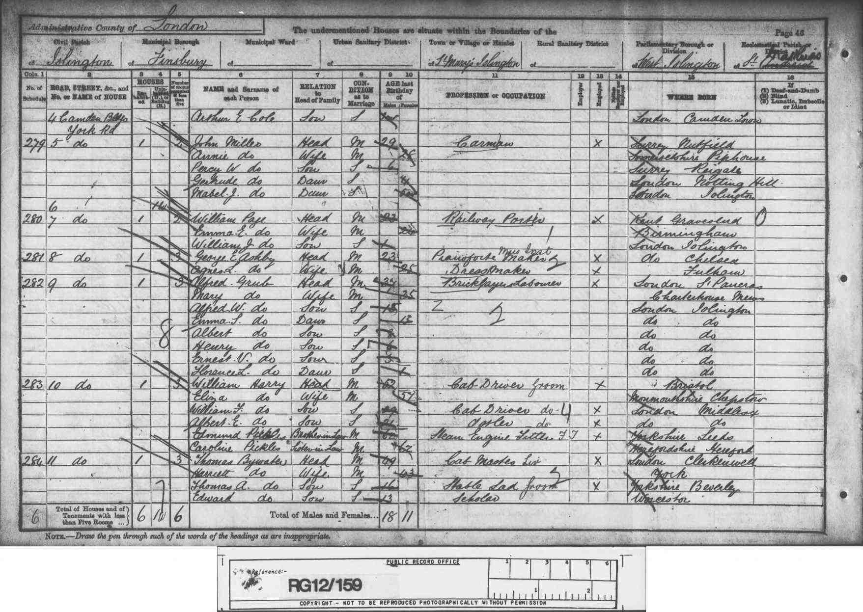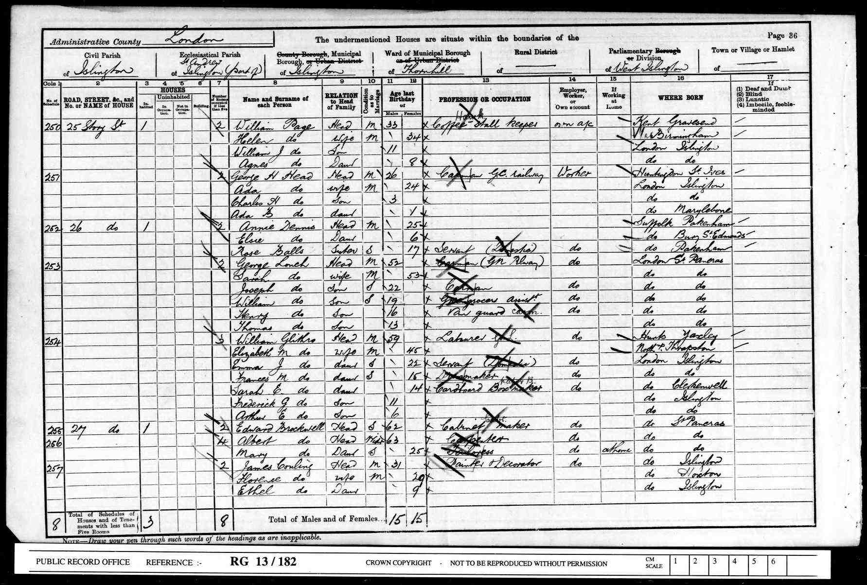 • Occupation: Coffee Stall Keeper, 1901, Islington.