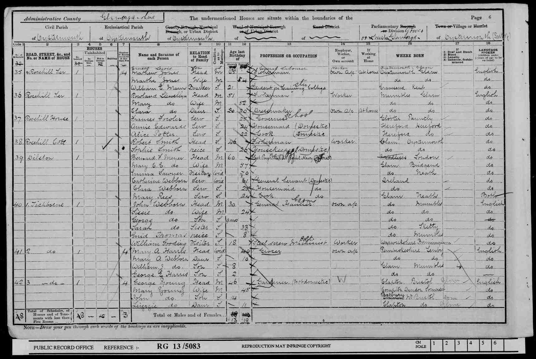 • Occupation: Student at Training College, 1901, Oystermouth, Glamorgan, Wales.