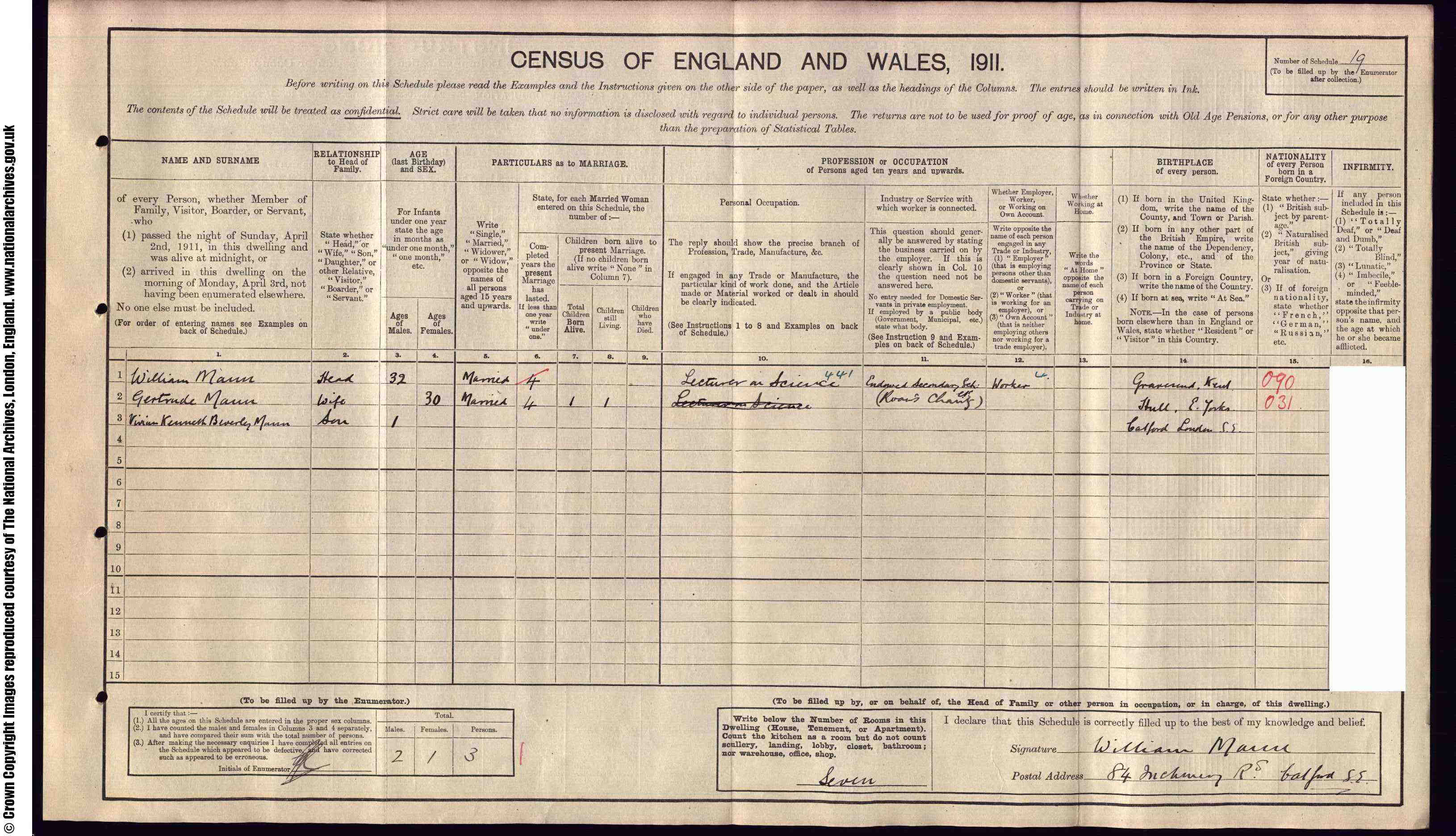 • Occupation: lecturer in science, 1911, Lewisham, Kent, England. |