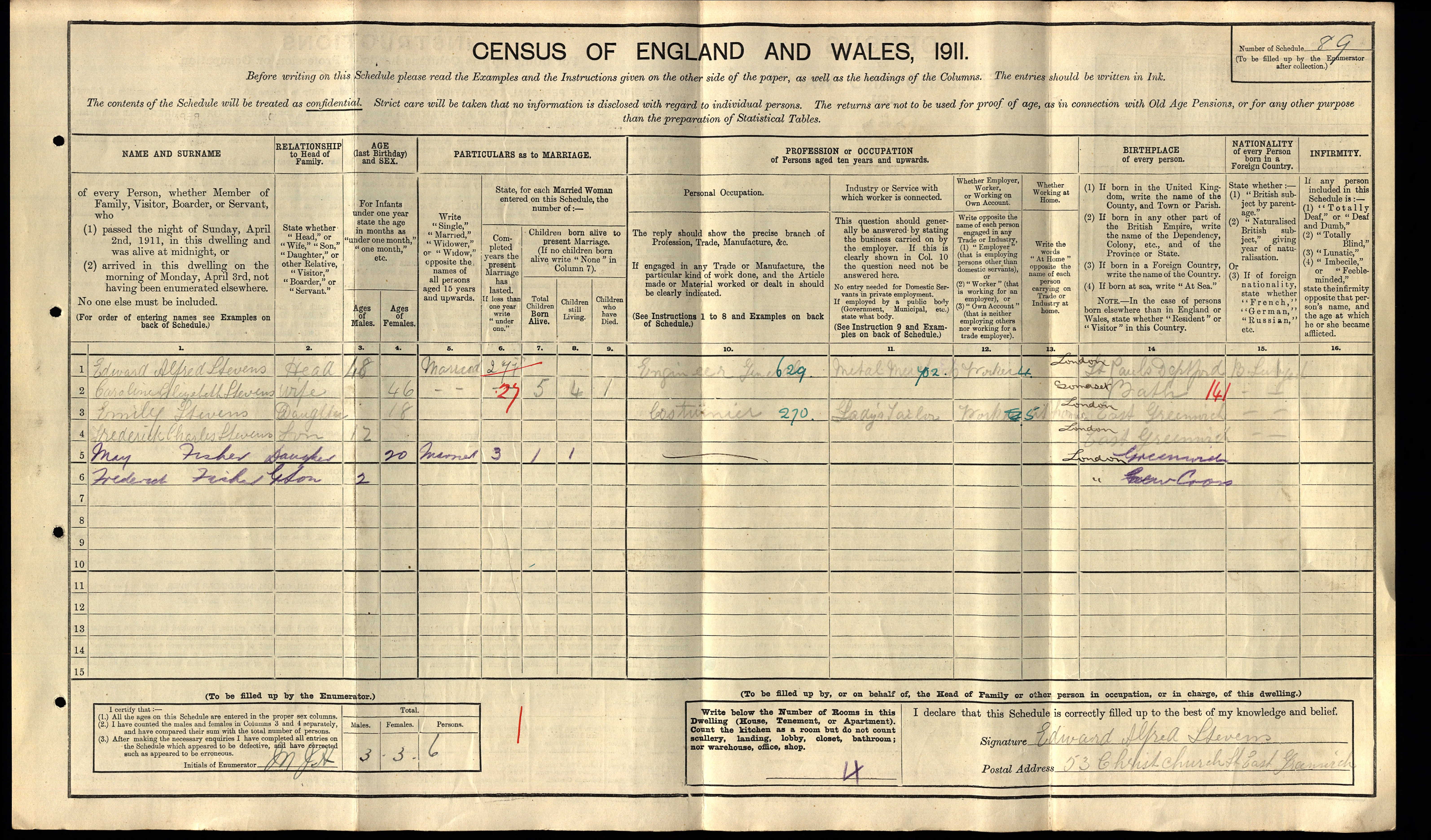 • Lived at: 53 Christchurch Street, 1911, East Greenwich, London.