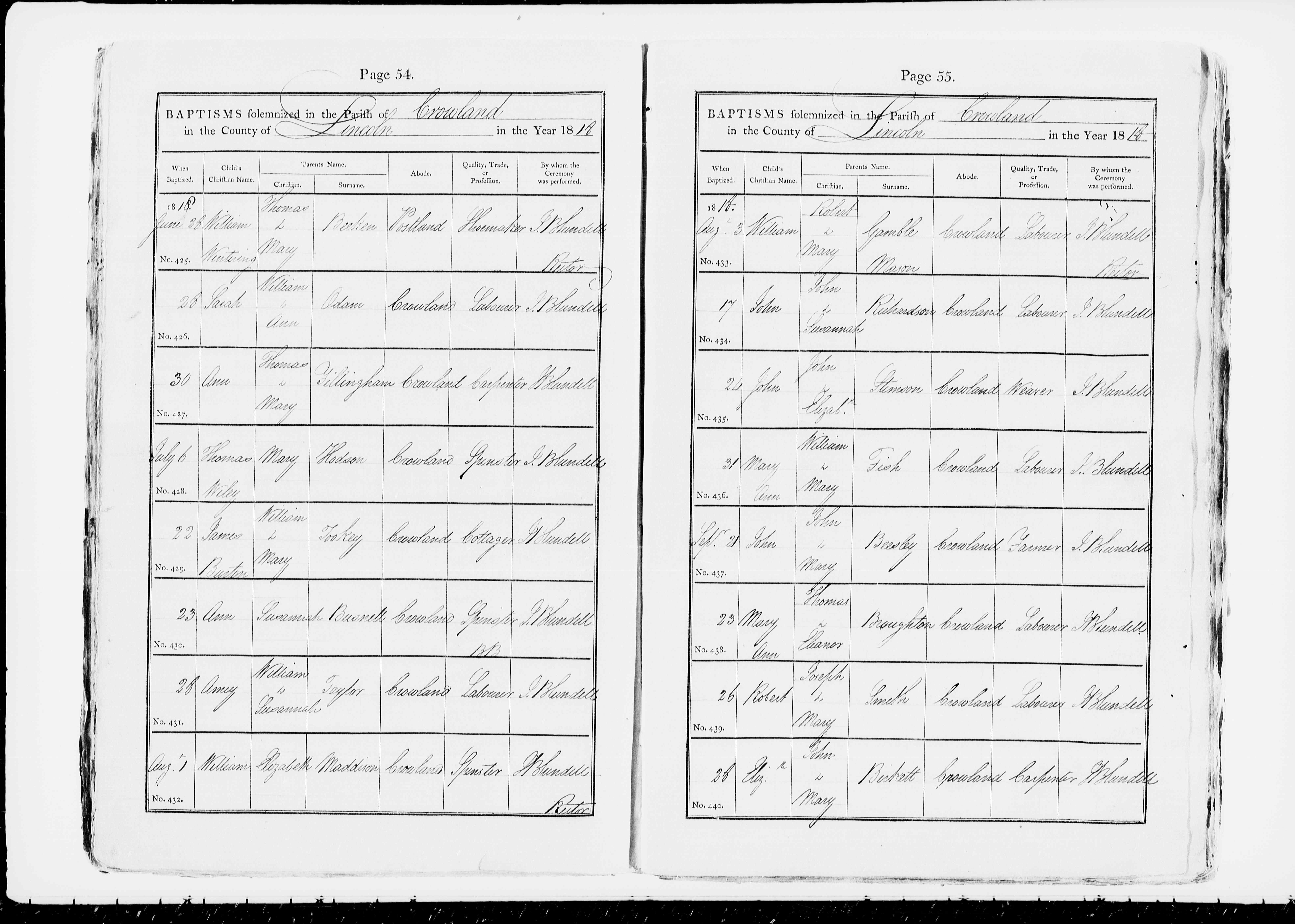 • Baptism Image: Parish Record, 1818, Crowland, Lincs. • Alt. Birth: Crowland, Jul 1818, Lincoln, Lincolnshire, England. as per baptism